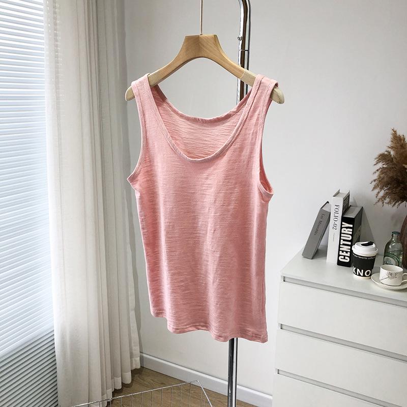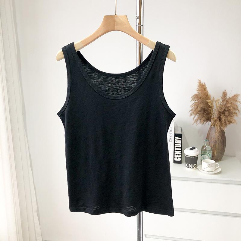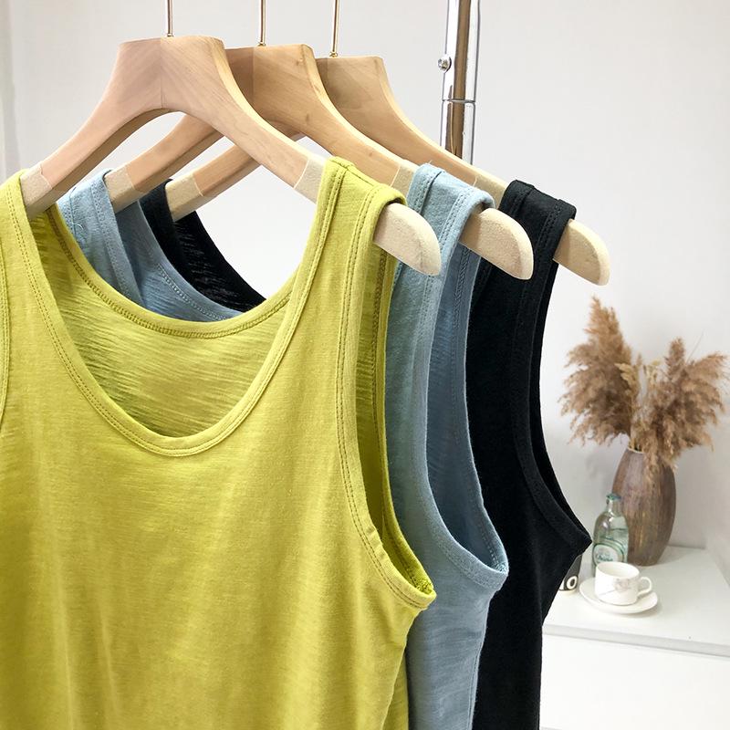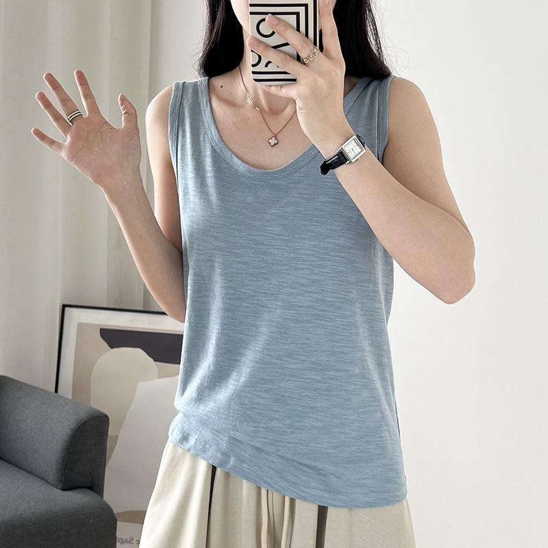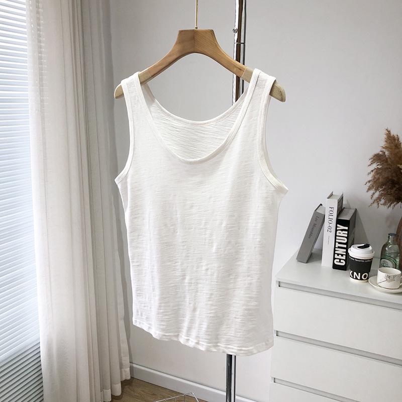 Женская майка с U-образным вырезом из бамбукового хлопка: 2024 Свободный крой, Закрывает подмышки, Летняя одежда из чистого хлопка