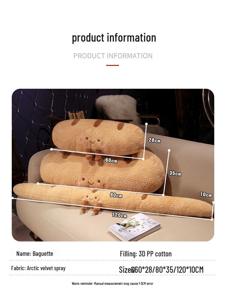 Очаровательная плюшевая подушка-багет: Большая мягкая игрушка с едой для дивана, кровати или спинки