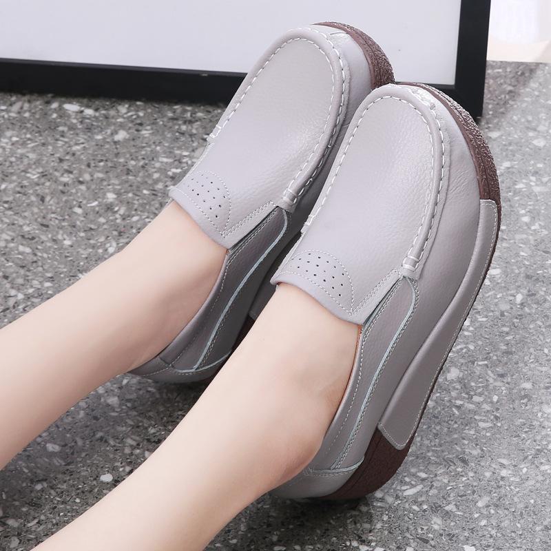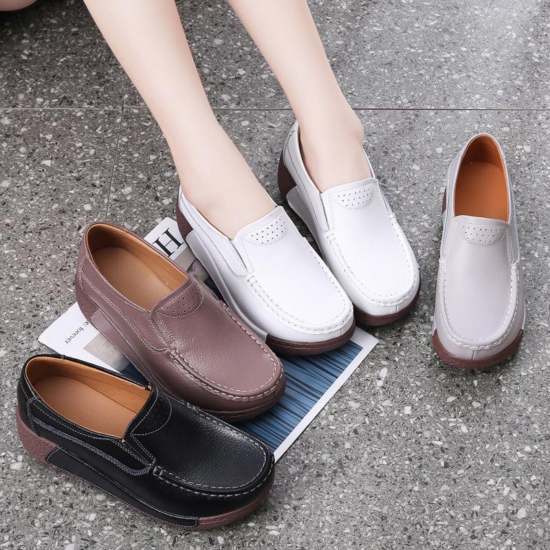 Однопедальные удобные кожаные туфли-маффины на платформе, женские одинарные туфли на танкетке, спортивно-повседневные женские одинарные туфли