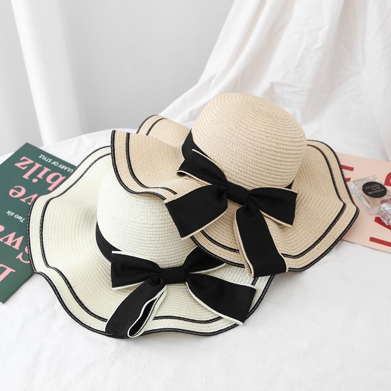 Новая летняя женская шляпа от солнца, повседневная модная шляпа-панама с бантом, соломенная шляпа с лентой-бантом, дорожная пляжная шляпа, универсальная, устойчивая к УФ-излучению
