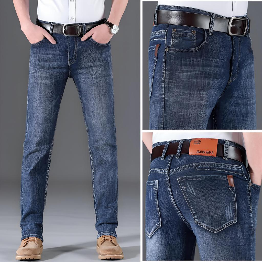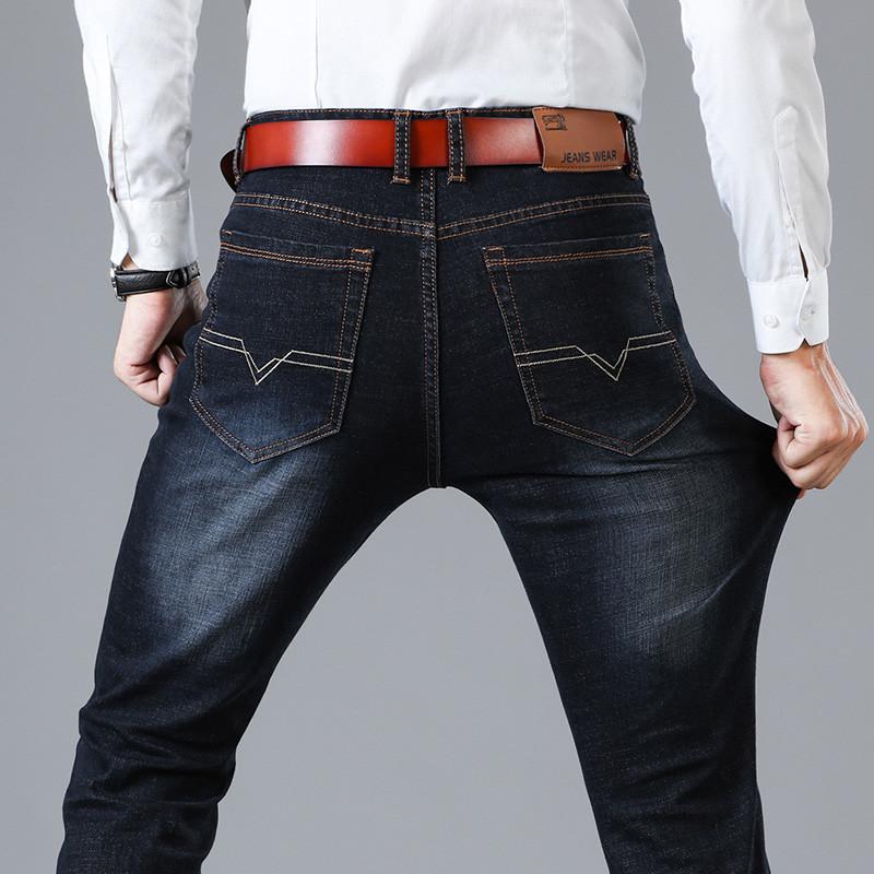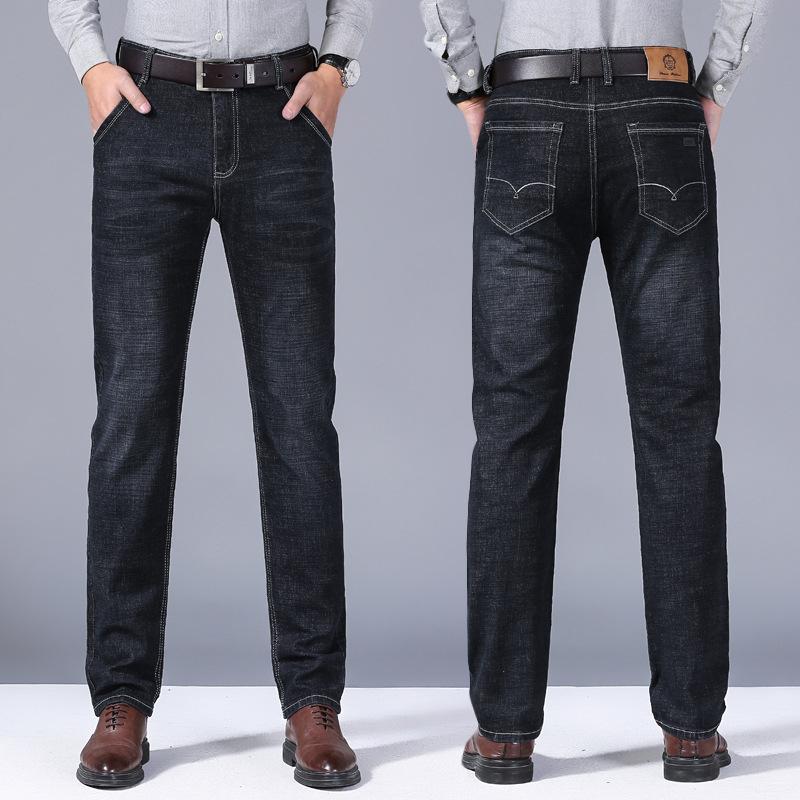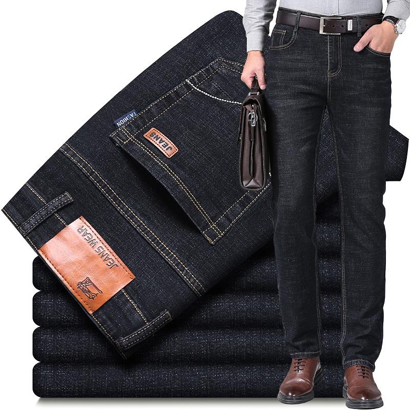Новые мужские джинсы со средней талией, свободные прямые трендовые универсальные эластичные повседневные длинные брюки