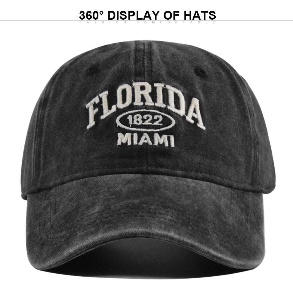 Унисекс Винтажная бейсболка FLORIDA Вышивка букв Уличная Повседневная Солнцезащитная шляпа для путешествий Мужская Женская Хип-хоп шляпа Шляпа с мягким верхом