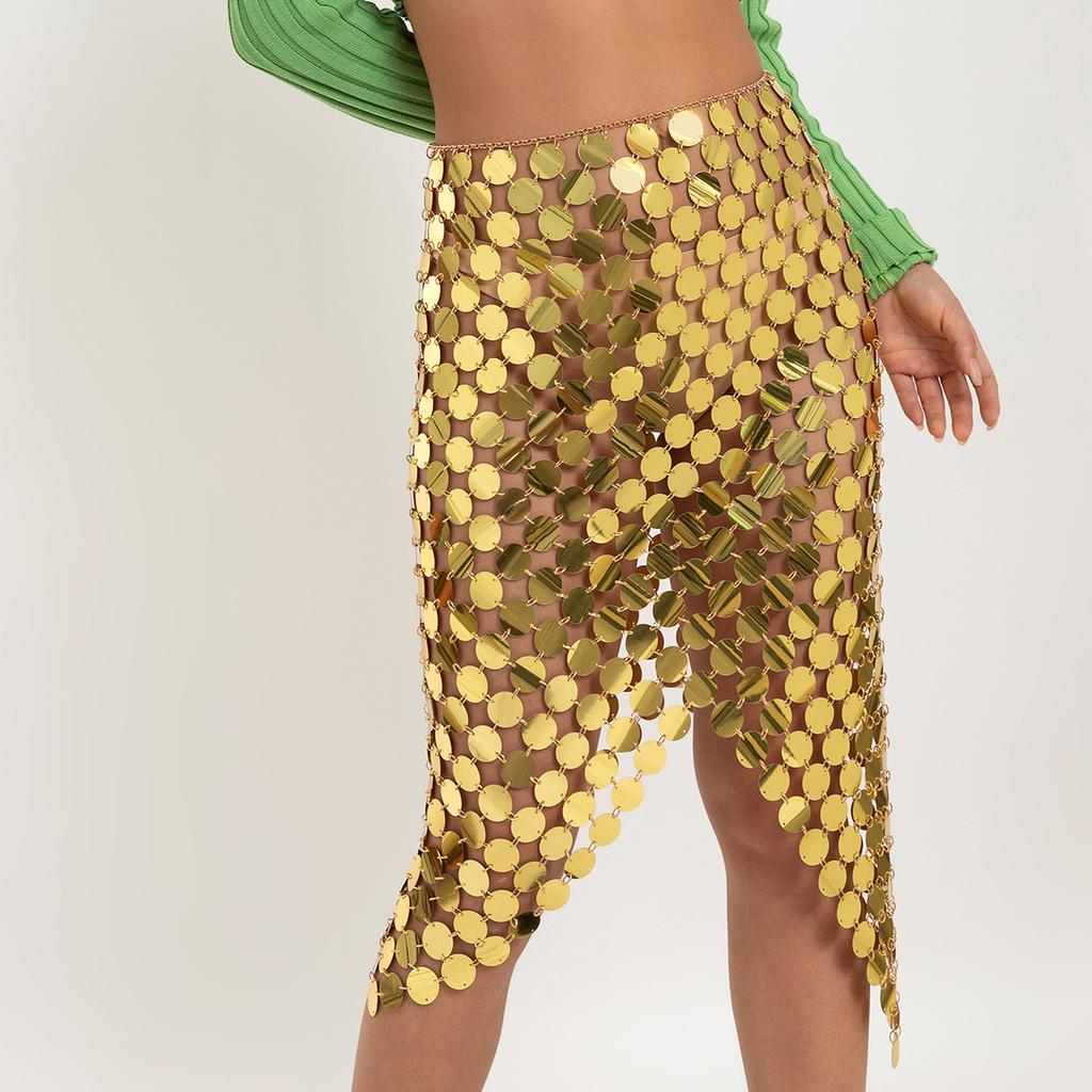 Пляжное шоу круглая цепочка для тела, сексуальная контрастная цветная юбка с ручной вышивкой пайетками для женщин