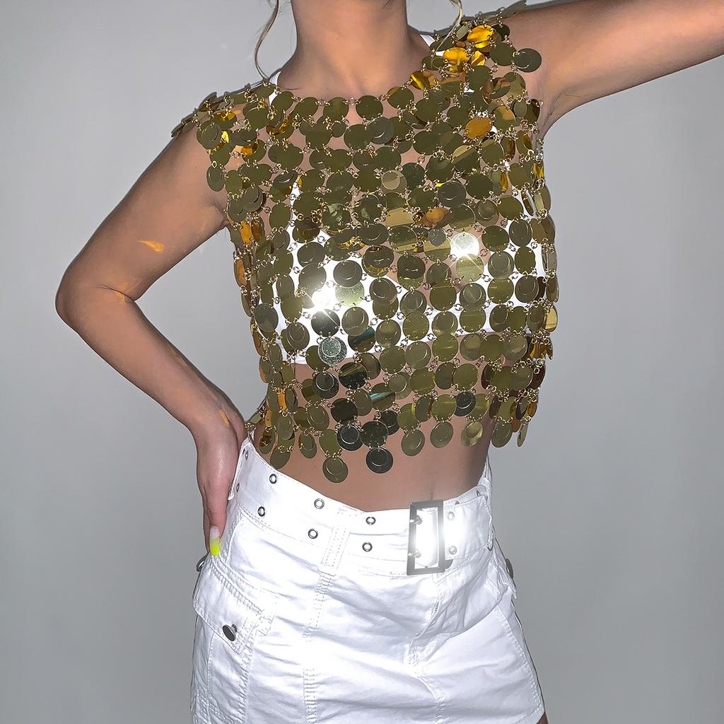 Креативные пайетки внахлест, полые, уличная мода, одежда для бикини, сексуальная ночная клубная, хипстерская, с бахромой, боди-цепочка
