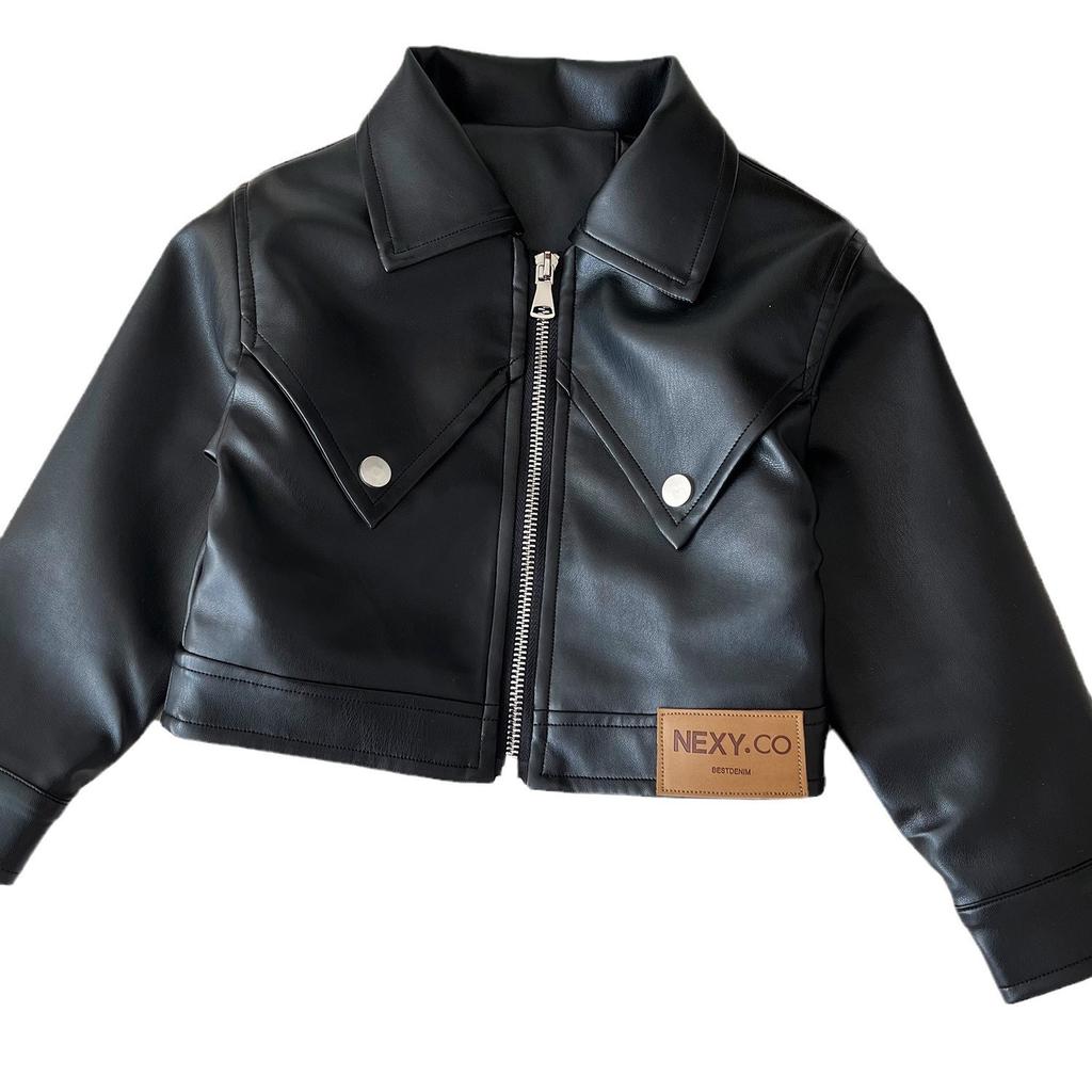 Комплект из двух предметов для девочек Красивый лацкан Однотонный кожаный топ + Однотонная кожаная плиссированная юбка Детская одежда Одежда для девочек-малышек