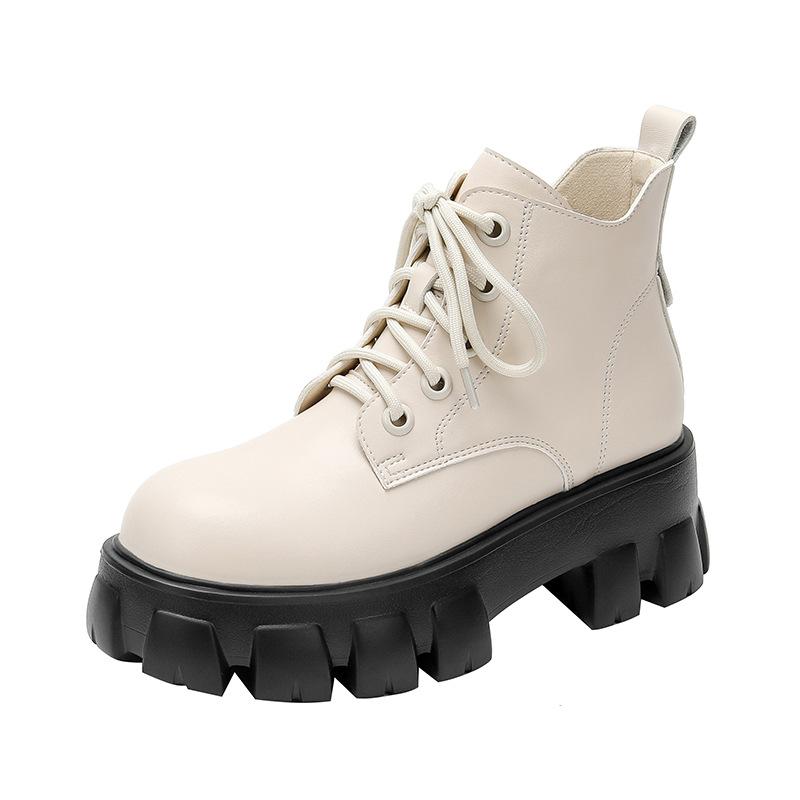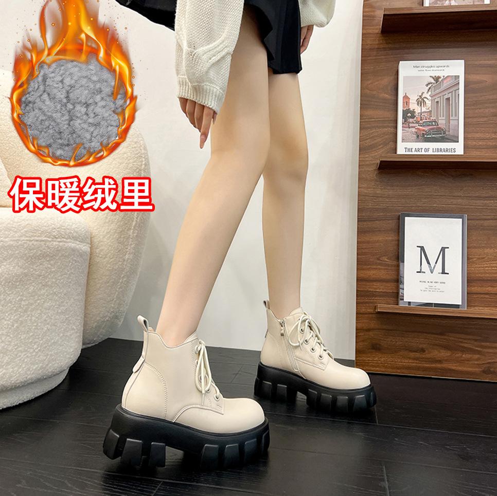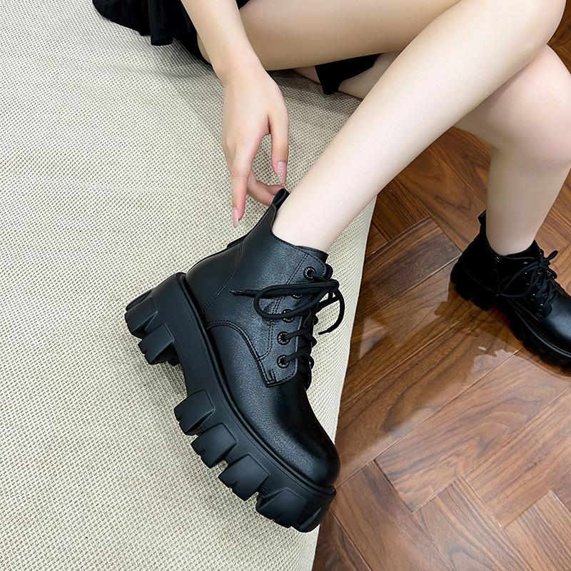 Женские короткие ботинки на толстой подошве с внутренней платформой, с ветрозащитной молнией сбоку, женские ботинки, ботинки Мартин на толстом каблуке для колледжа