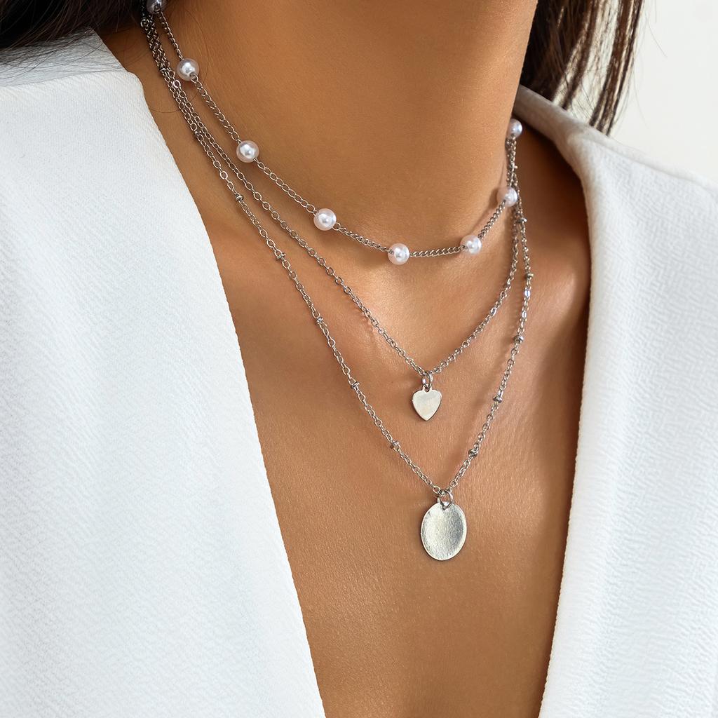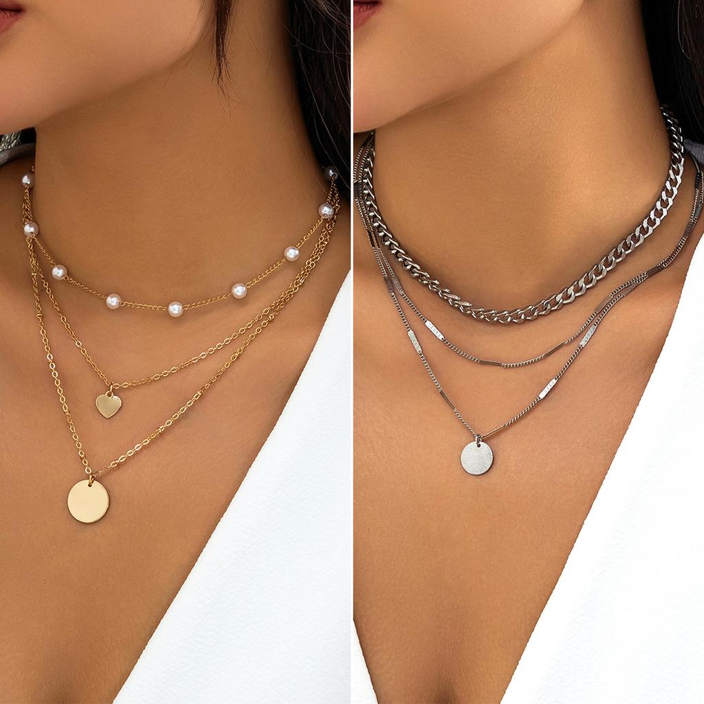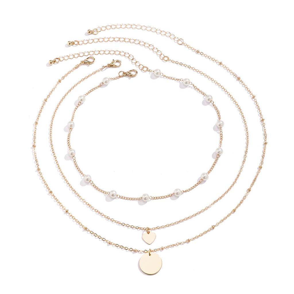 Тонкая цепочка многослойный набор ожерелий женский, простой геометрический диск с искусственным жемчугом, предмет в сладком и холодном стиле