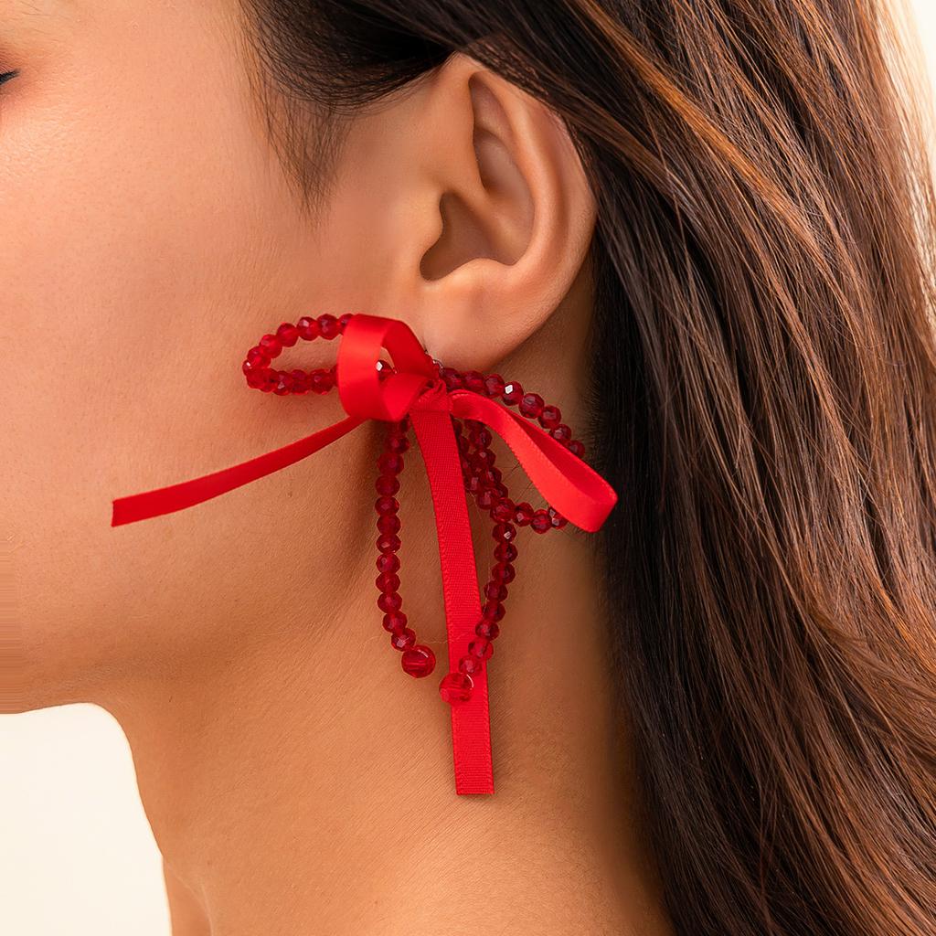 Ювелирные изделия Простые серьги-гвоздики с бусинами из искусственного жемчуга, креативные серьги-гвоздики с двойным бантом BowEarrings
