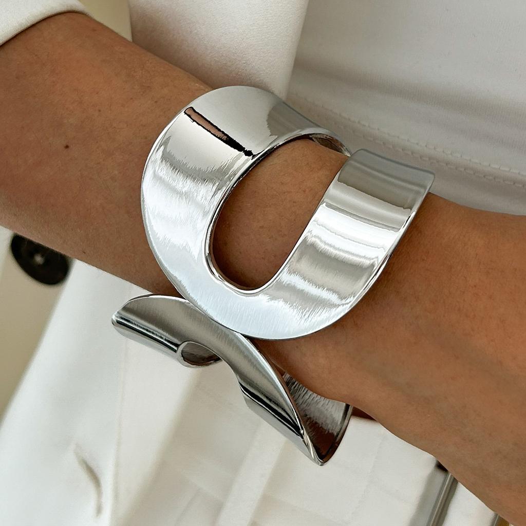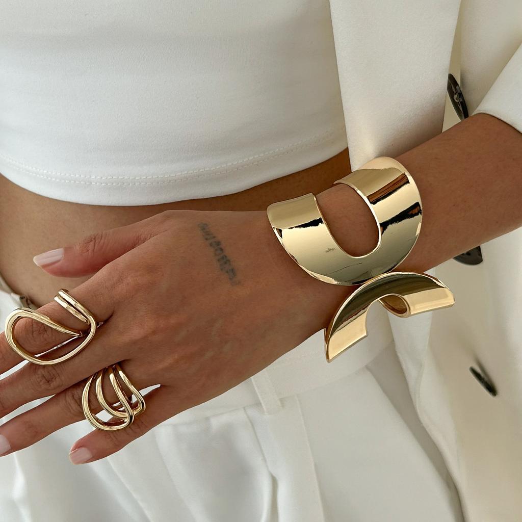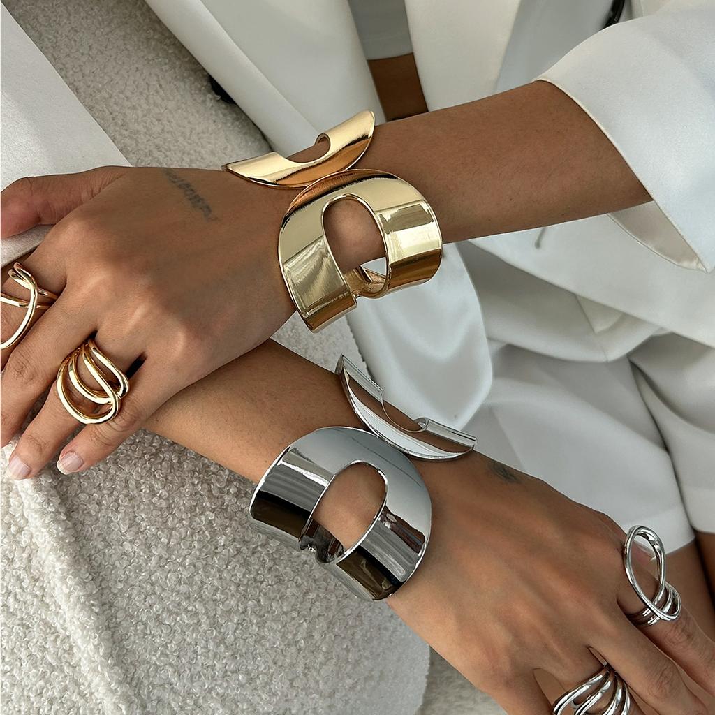 Преувеличенный большой глянцевый полый браслет с двойным кольцом женский ins металлический ветер персонализированный геометрический открытый ручной ювелирный браслет