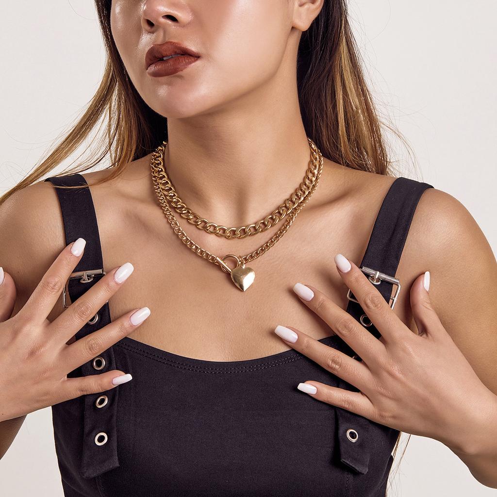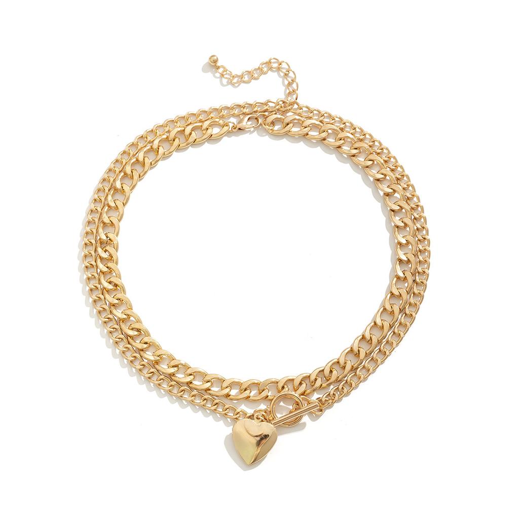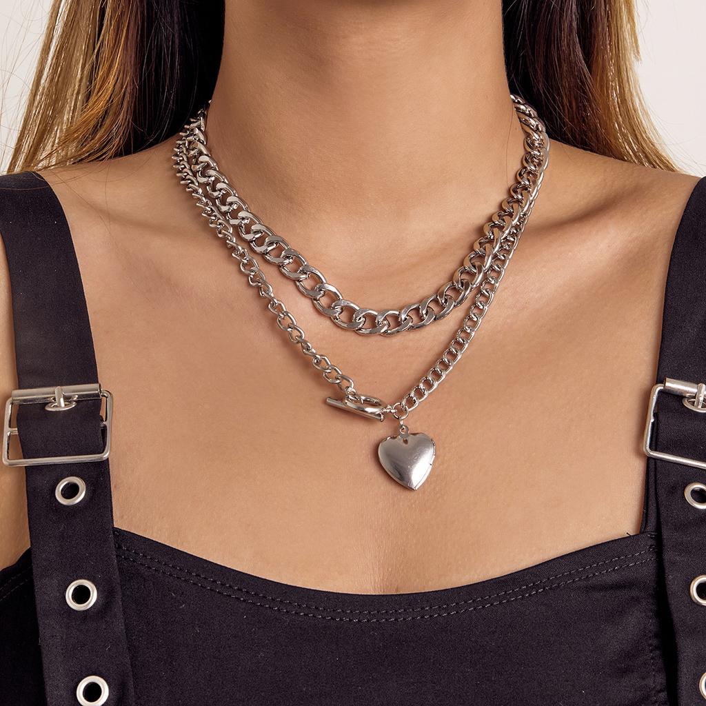 Аксессуары, Креативное геометрическое ожерелье с OT-застежкой, Панк толстая цепь, Открытое персиковое сердце, Двойное ожерелье для женщин