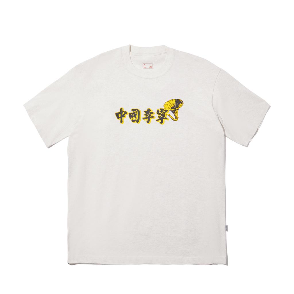 Li Ning Повседневный Минималистичный Однотонный Пуловер с Круглым Вырезом Свободная Футболка с Коротким Рукавом Мужские Топы Цветочно-Серый Молочно-Белый AHSV119-1