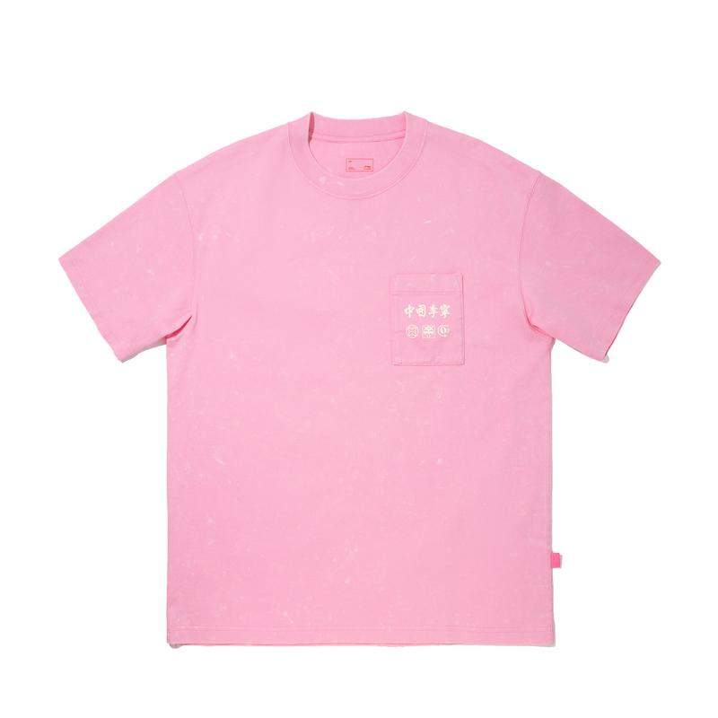 Li Ning Повседневная Простая Однотонная Футболка с Круглым Вырезом и Коротким Рукавом Мужские Топы Персиково-Розовый AHSV649-2