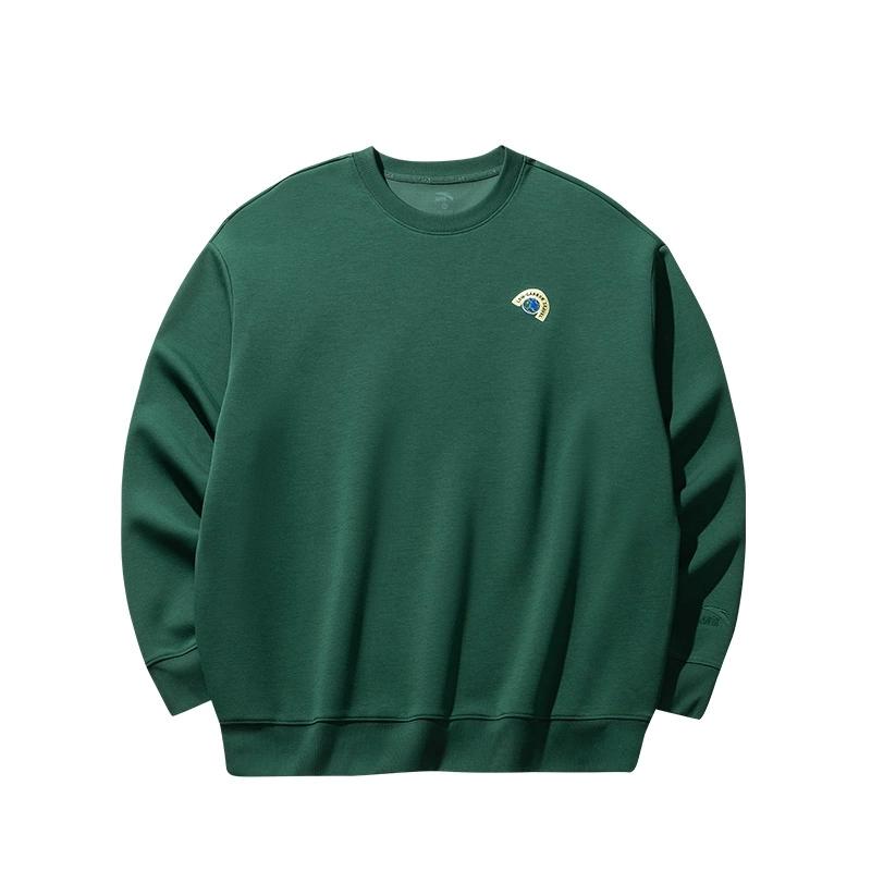 Anta Удобный Повседневный Простой Универсальный Пуловер с Круглым Вырезом Свободная Толстовка Мужская Толстовка Теплый Нефритово-Зеленый 952518706-6