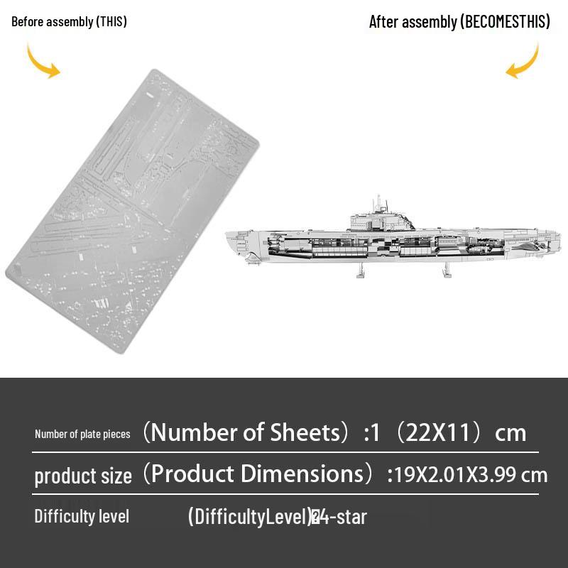 Немецкая подводная лодка типа XXI 3D металлический пазл – Клей не нужен