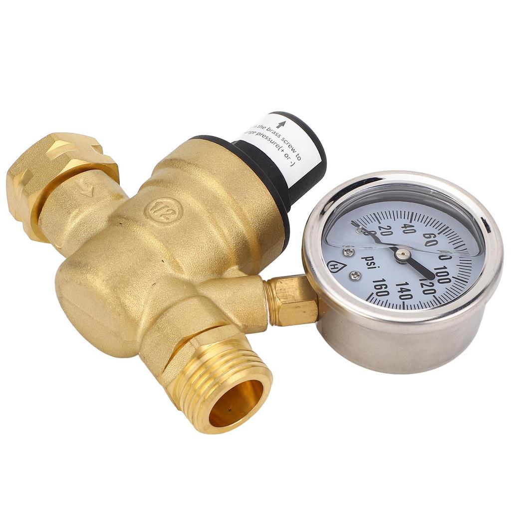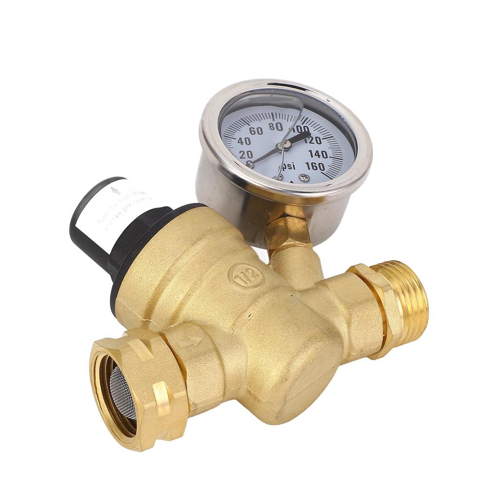 1 x Клапан регулятора давления водыВстроенный дисплей манометра: Регулятор давления воды оснащен манометром, позволяющим пользователям легко контролировать давление воды.. Эта функция необходима для автодомов, кемперов и прицепов для путешествий, чтобы обеспечить безопасную работу системы водоснабжения.