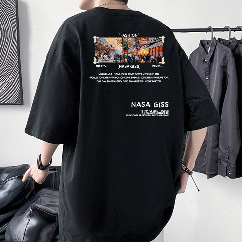 Мужская футболка оверсайз с приспущенным плечом Nasa Giss, 100% хлопок, уличная футболка