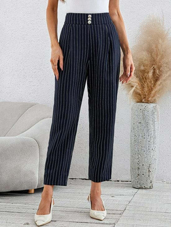 Женские облегающие брюки от костюма с высокой посадкой, в полоску, на пуговицах - городской повседневный стиль, длина девять пунктов — купить товар онлайн с бесплатной доставкой по всему миру!