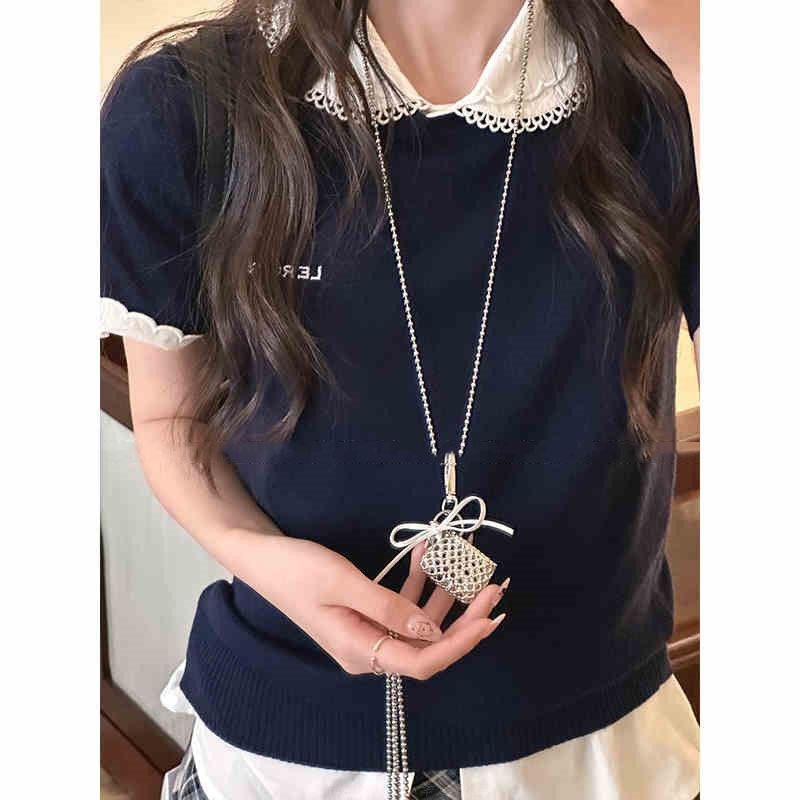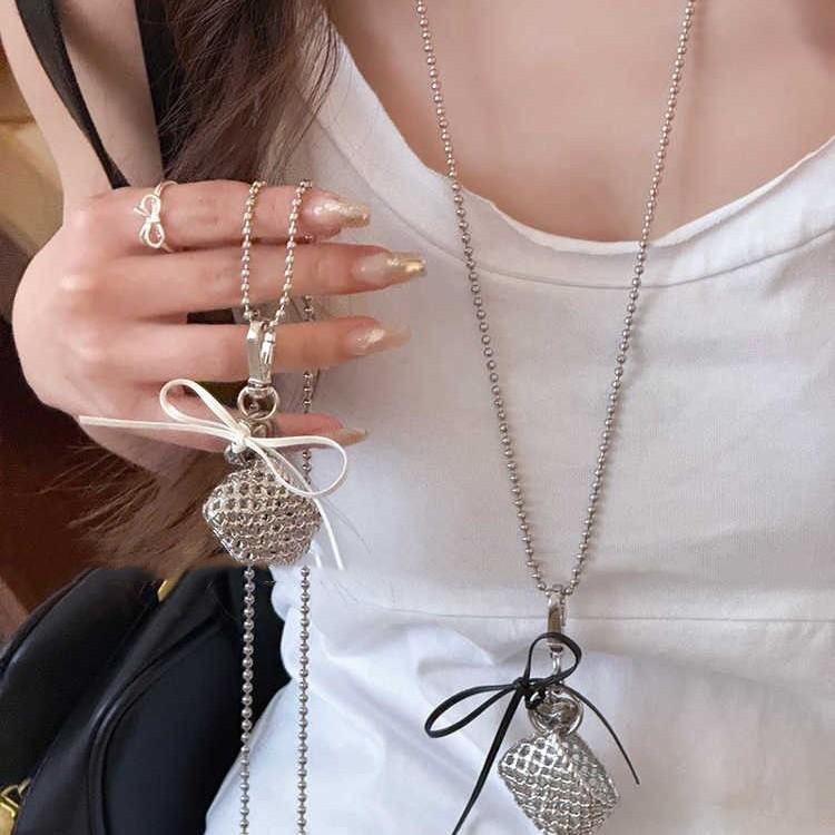 Серебряная плетеная сумка, ожерелье с бантом, персонализированный дизайн, высококлассная шейная цепочка, модная ниша, милое и крутое ожерелье в стиле для женщин
