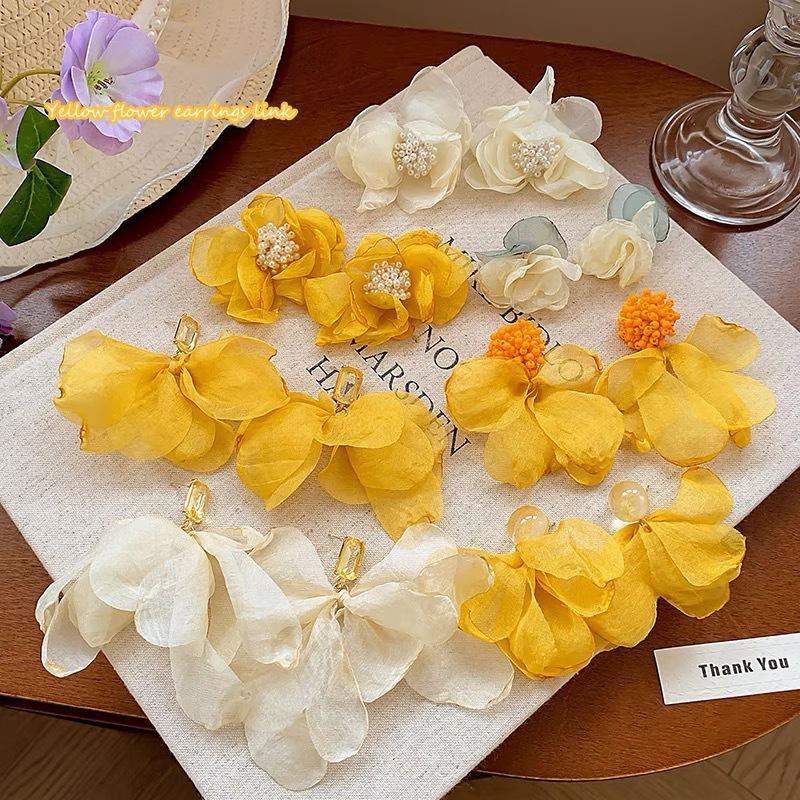 Супер фея желтые сетчатые серьги-цветы 2025 новые серьги-пусеты в стиле морского отдыха, нишевые серьги с высоким темпераментом