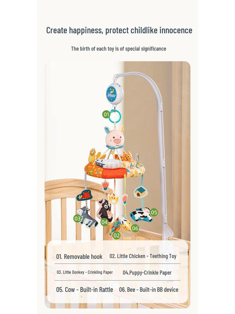 Вращающийся музыкальный мобиль с успокаивающей колыбельной для новорожденного.