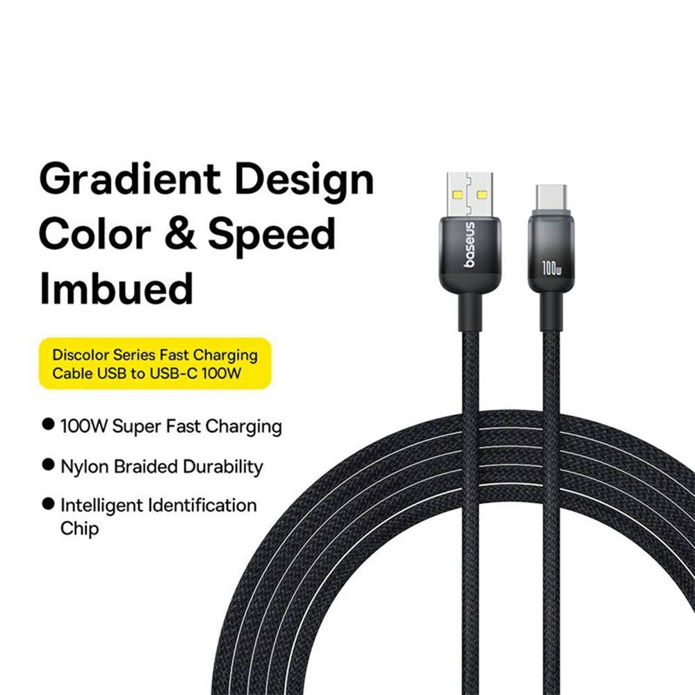 BASEUS Серия Discolor 2 м Кабель для быстрой зарядки USB-A на Type-C 100 Вт Нейлоновый плетеный кабель для передачи данных
