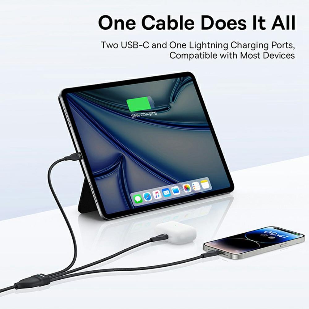 BASEUS Flash Series 3 1,5 м Кабель для быстрой зарядки «три в одном» Type-C на C+C+L 100 Вт Кабель для передачи данных
