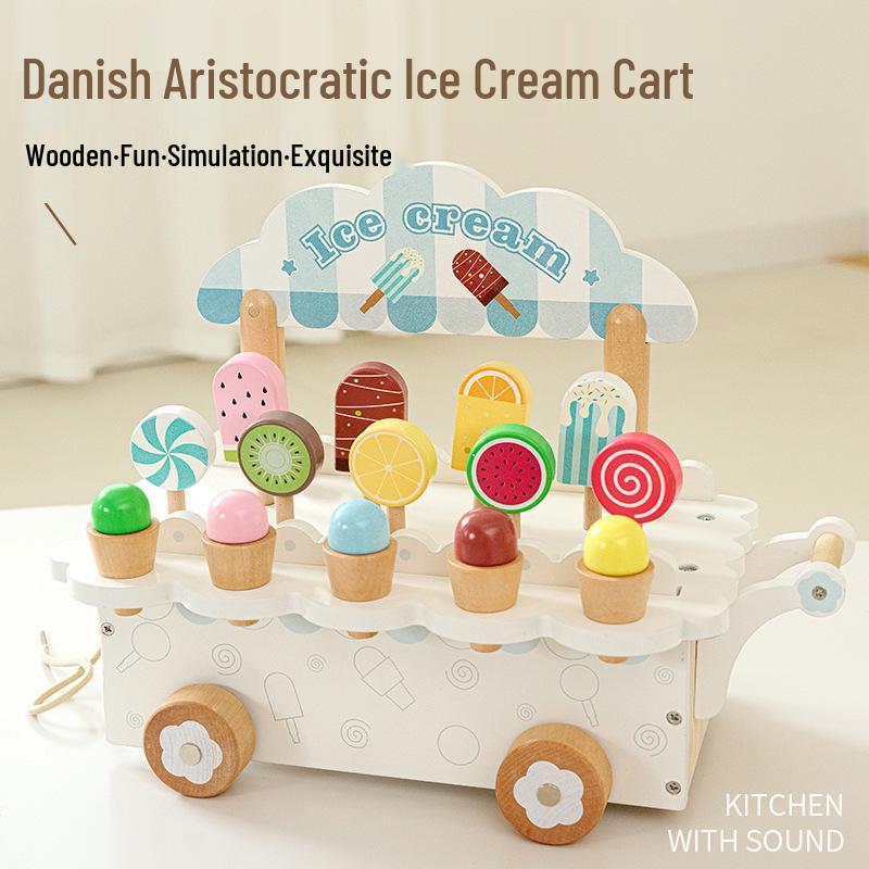 Детская деревянная тележка для мороженого для ролевых игр и взаимодействия родителей и детей