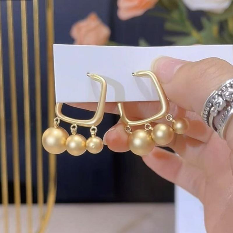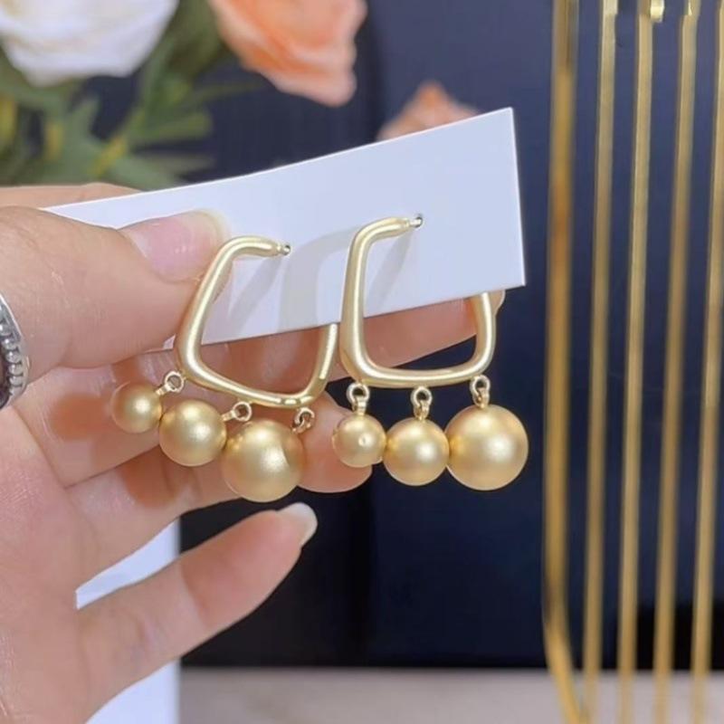 Серьги-подвески в виде золотых матовых шариков, серьги с индивидуальным дизайном в стиле холодного ветра, нишевые серьги высокого класса.