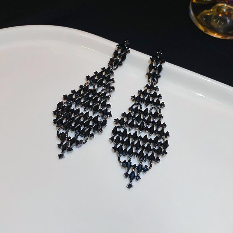 Преувеличенные ромбовидные черные серьги с бриллиантами Серьги высокого класса в стиле Heavy Industry Модные серьги с темпераментом в стиле легкой роскоши Женские