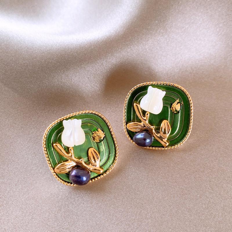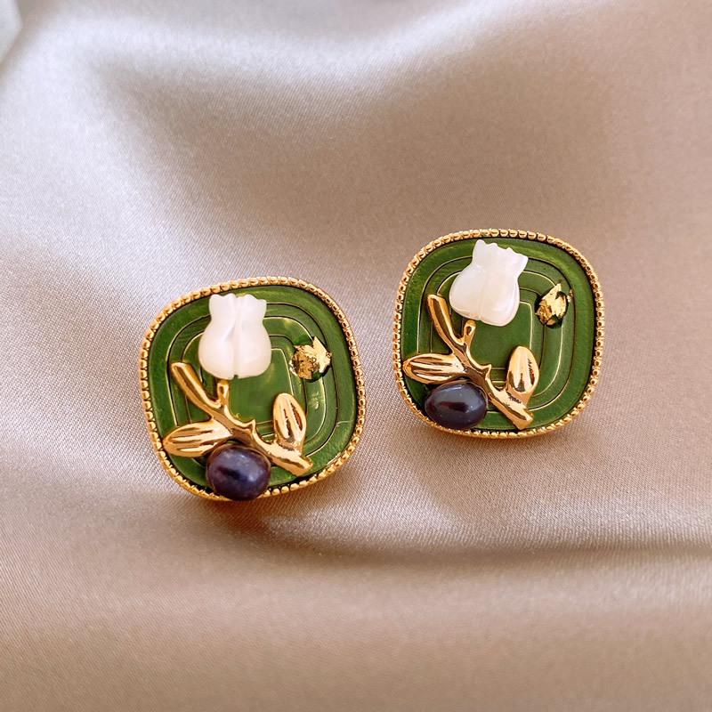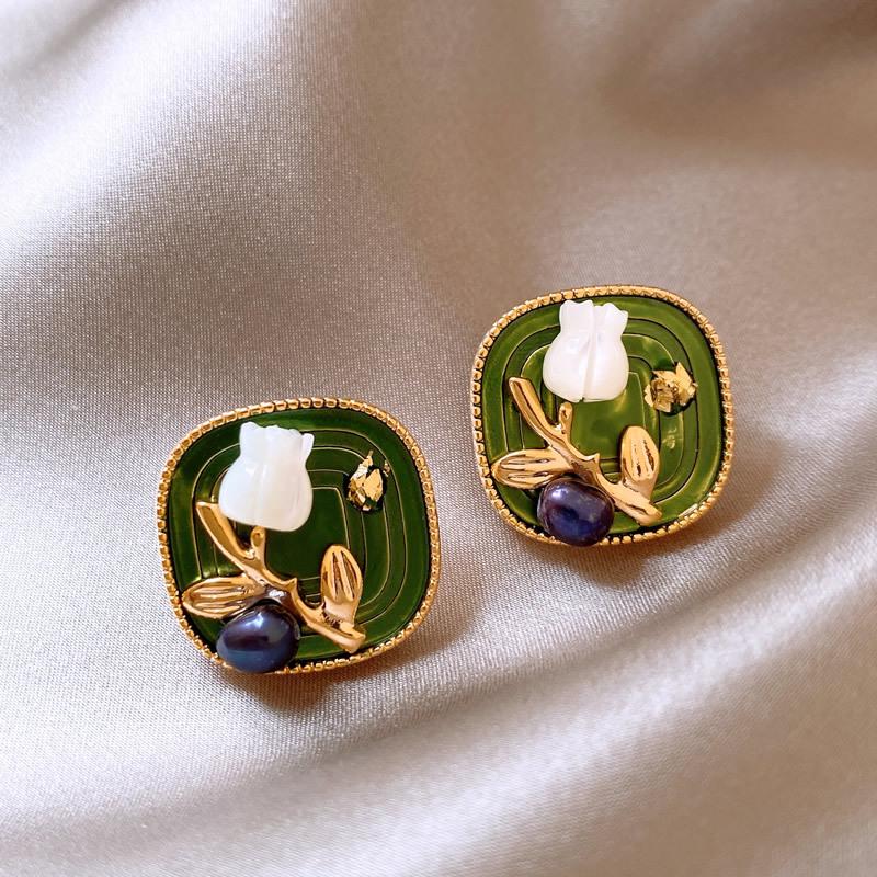 Серьги-гвоздики в виде букета квадратных цветов с капающим маслом, маленькие свежие серьги Мори, модные ретро-серьги высокого класса