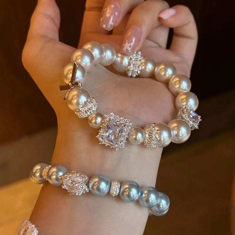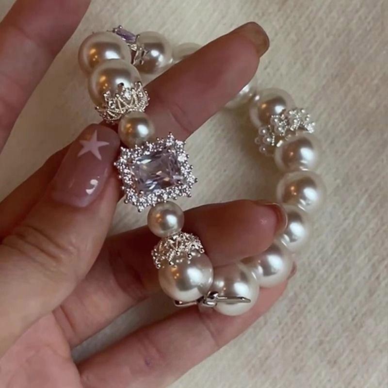 Жемчужный циркон квадратный браслет с бусинами в виде сердец французский ретро браслет легкой роскоши темперамент изысканные высококачественные ювелирные изделия женские