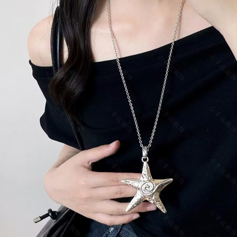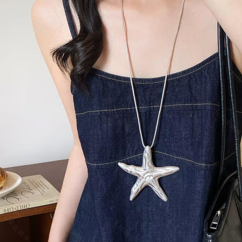 Серебряное простое и старое ретро ожерелье с подвеской в виде морской звезды, женское, в стиле морского отдыха, высококлассное, длинная цепочка для свитера, аксессуары