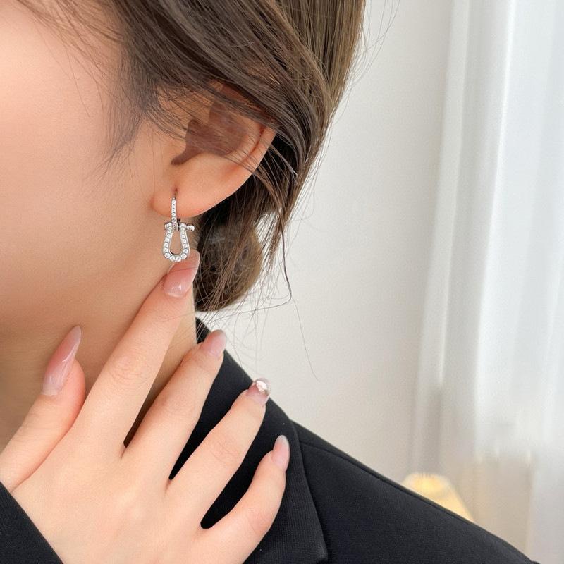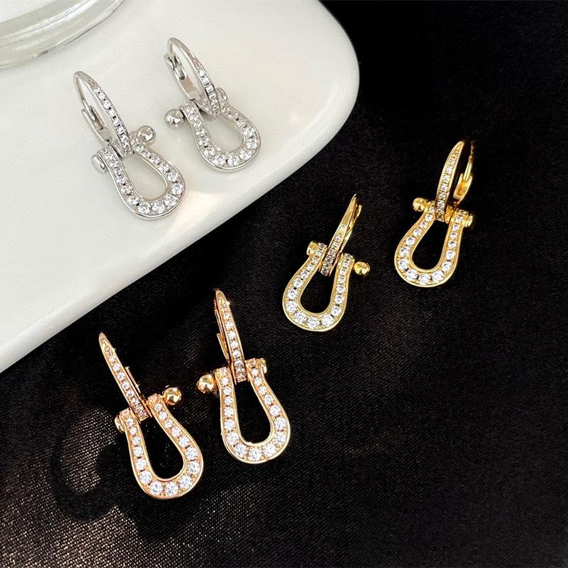 Micro-inlaid zircon U-shaped horseshoe buckle earrings, exquisite niche light luxury, exquisite ear buckle, fashionable and versatile earrings.