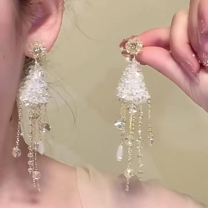 Серьги с подвесками в виде капли воды с кристаллами и кисточками из серебряных игл, серьги с темпераментом высокого класса, нишевые модные универсальные серьги для женщин