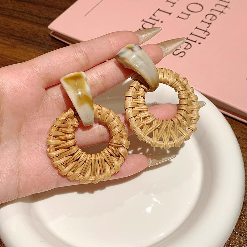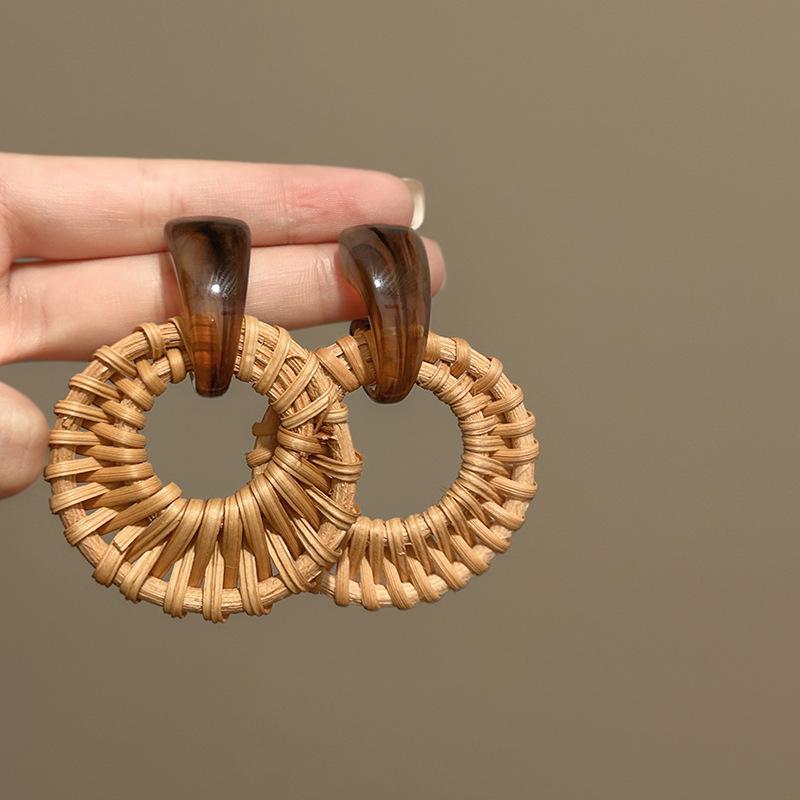 Серьги-подвески из смолы и ротанга в виде серебряной иглы, круглые, нишевые, преувеличенные, темпераментные, простые, модные, универсальные