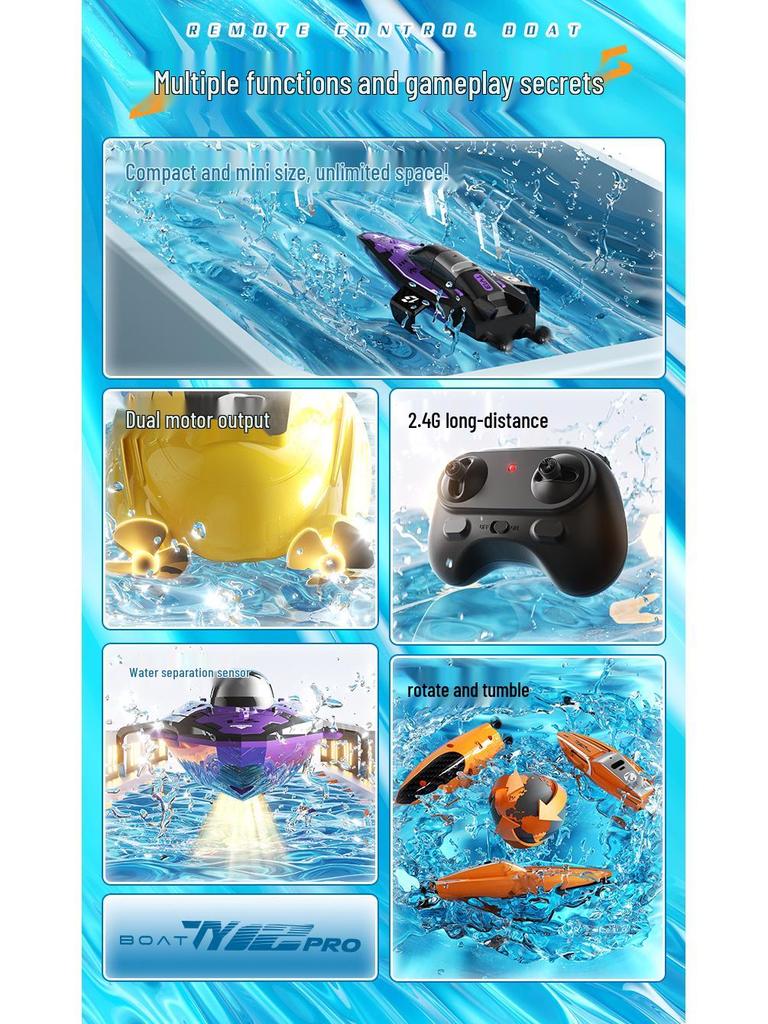 Мини-катер-трюкач с дистанционным управлением 2,4 ГГц - Двухмоторный, Водонепроницаемый, Электрическая игрушка для детей