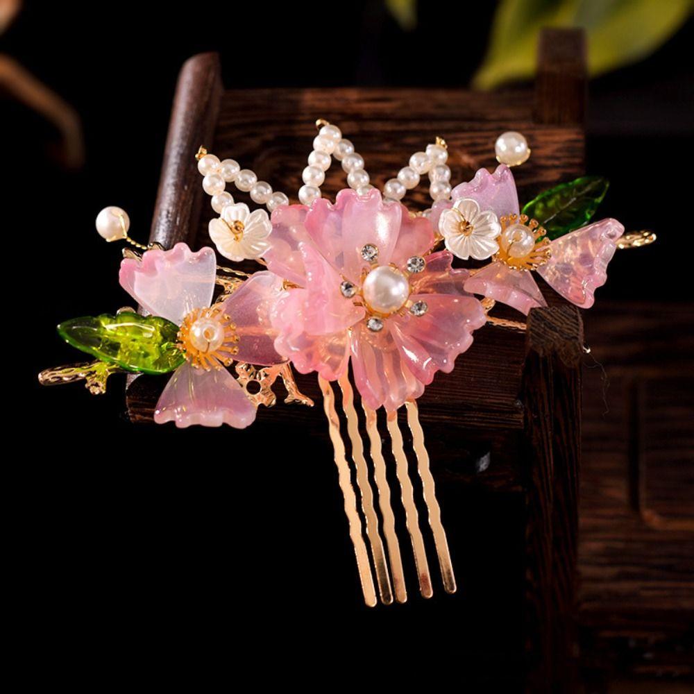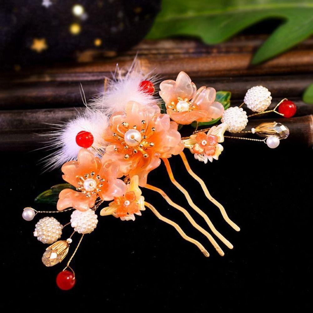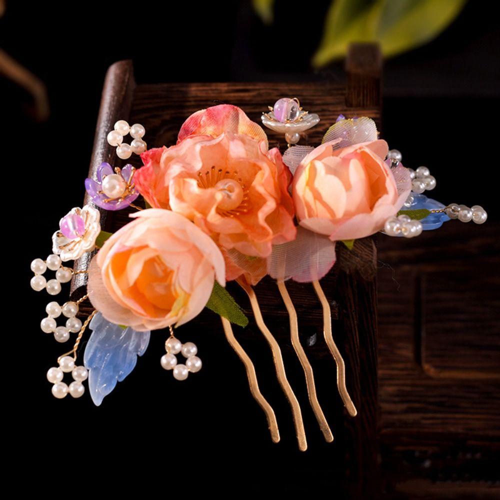 Floral Ancient Hair Stick Tassel Flower Hair Comb Antique Hanfu Headwear Cheongsam Accessories