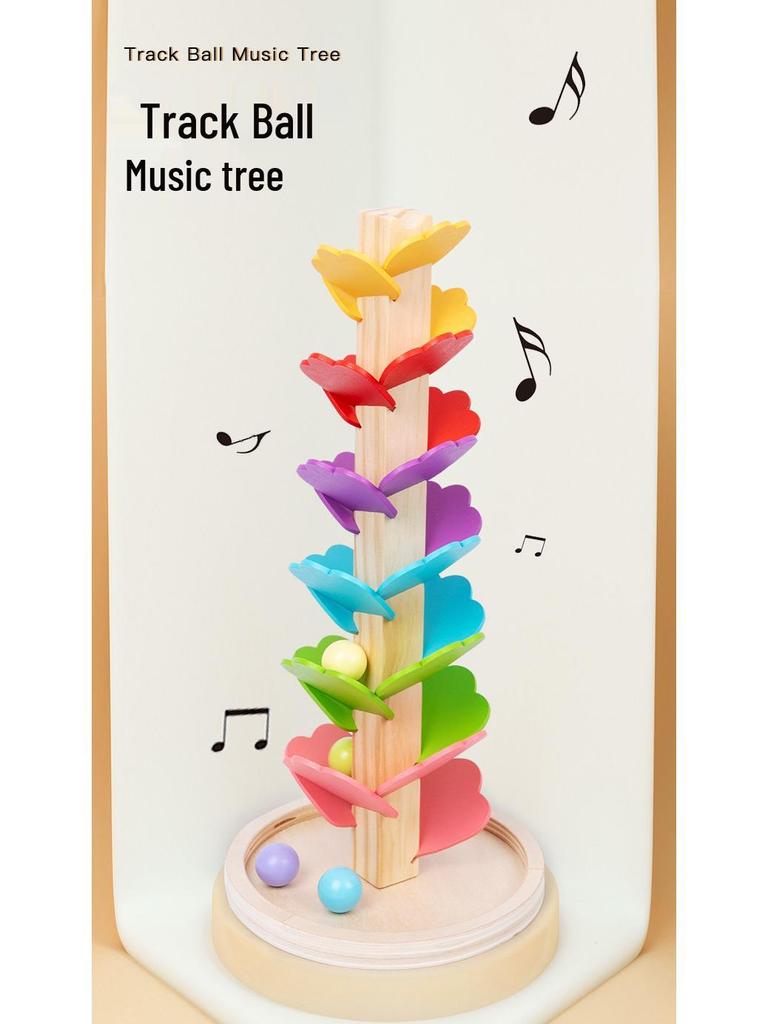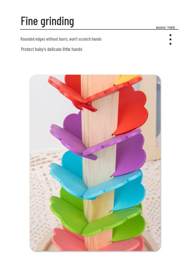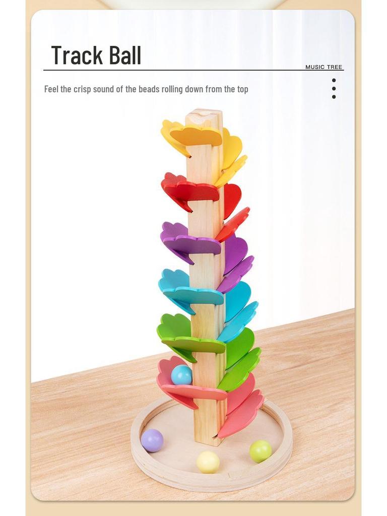 Монтессори Радужный Дерево с Шариками: Вращающийся укладчик листьев и музыкальная деревянная игрушка-пазл.