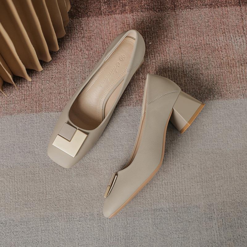 Профессиональная рабочая обувь с неглубоким вырезом, средним каблуком, толстым каблуком, на высоком каблуке, весна и осень, нежные одинарные туфли