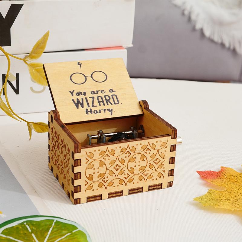 Хогвартс Ретро Деревянная Музыкальная Шкатулка с Ручным Приводом и Резьбой