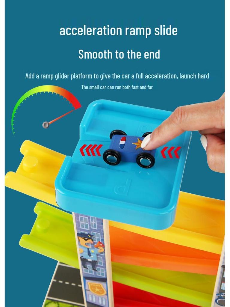 Детский деревянный игровой набор «Автомобильный трек-планер»: Веселая трасса и парковка