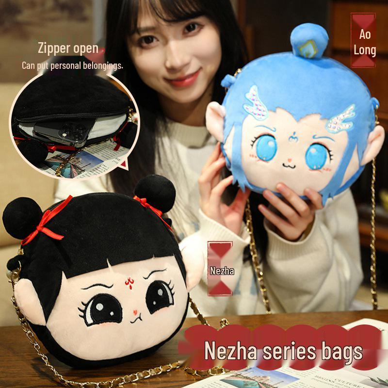 Плюшевая мультяшная сумка кроссбоди Нечжа - Мягкая, милая и стильная наплечная сумка для повседневного использования