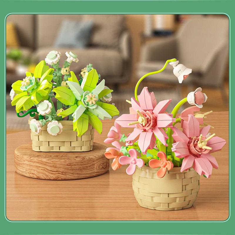 Подсолнух в корзине Конструктор - Совместимый с Лего Вечный цветочный горшок и Развивающая игрушка для сборки для девочек