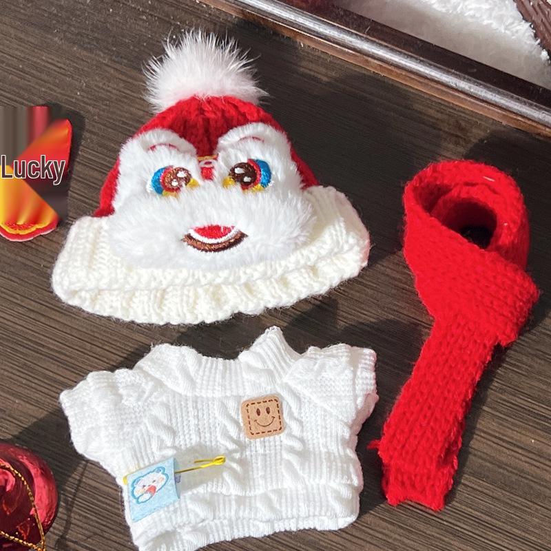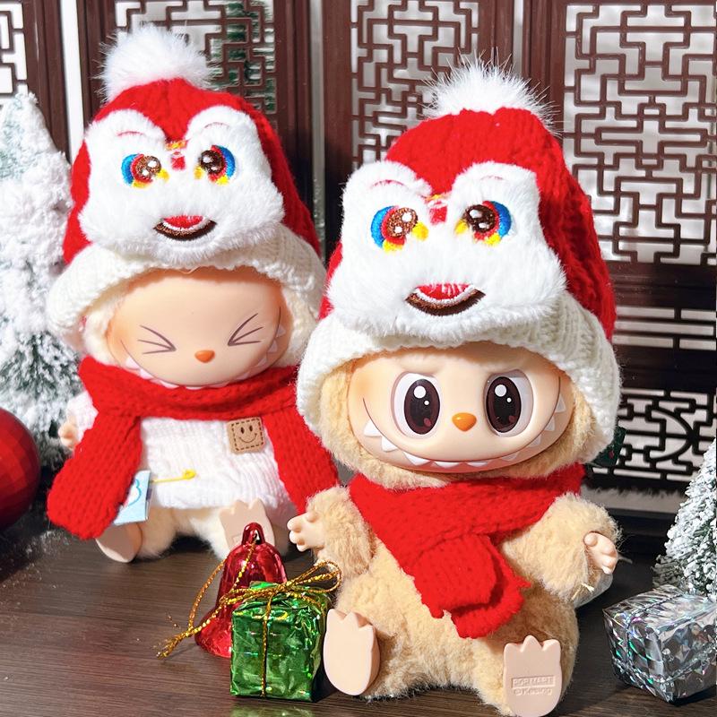 В наличии: Виниловая кукла Лабубу в новогоднем свитере, шарфе и шапке (Первое и Второе Поколения)