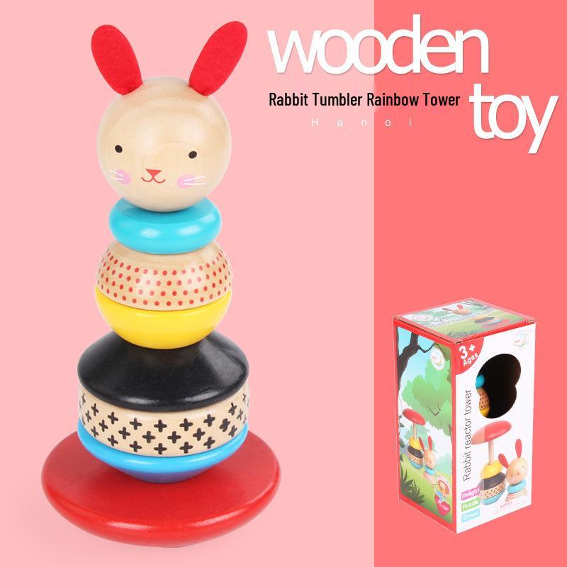 Деревянная пирамидка с мультяшными животными - Милая игрушка-неваляшка для малышей — купить товар онлайн с бесплатной доставкой по всему миру!
