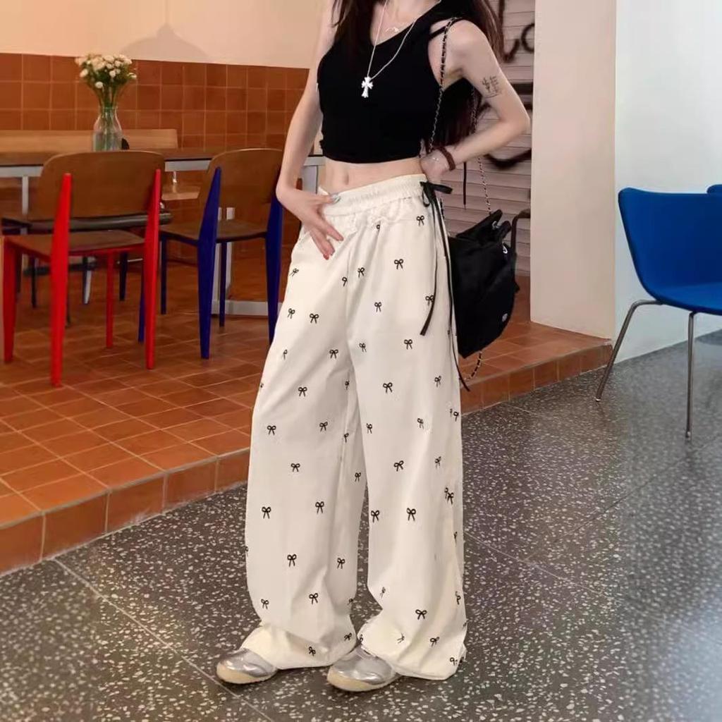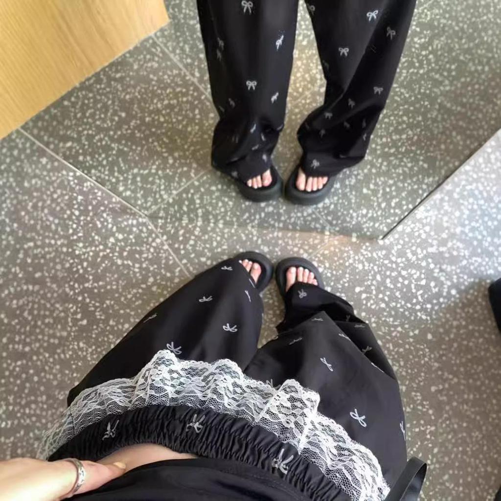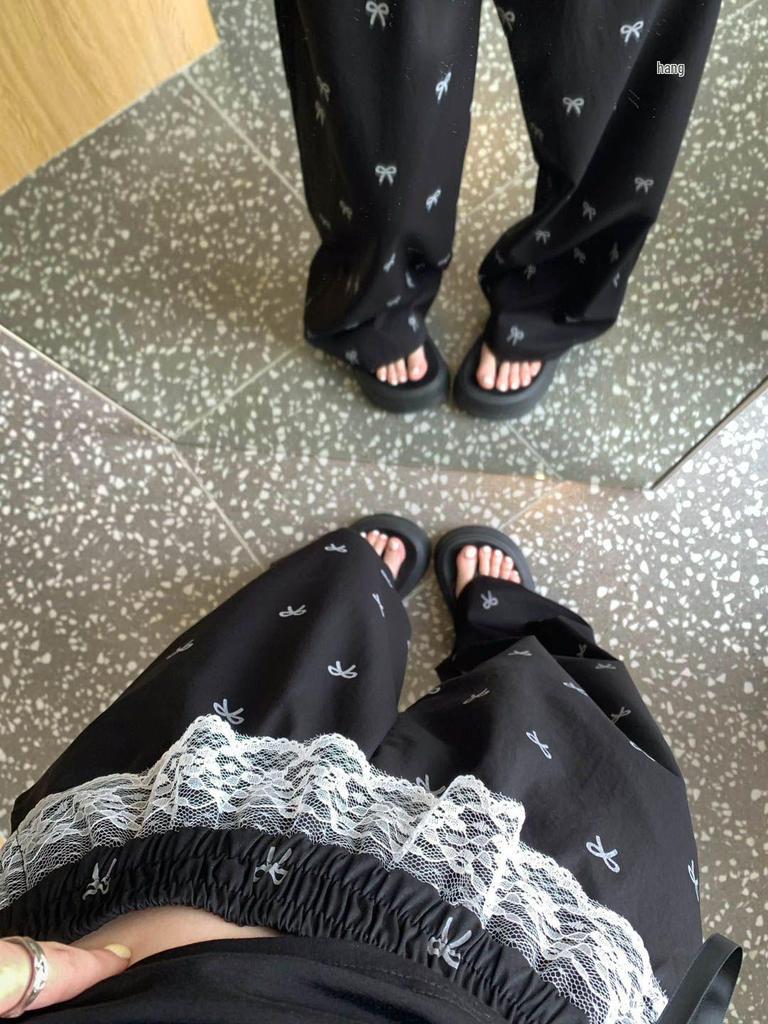 Сладкие и пикантные женские брюки-кюлоты с кружевной вставкой и бантом - Летние повседневные брюки на резинке