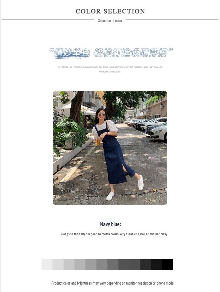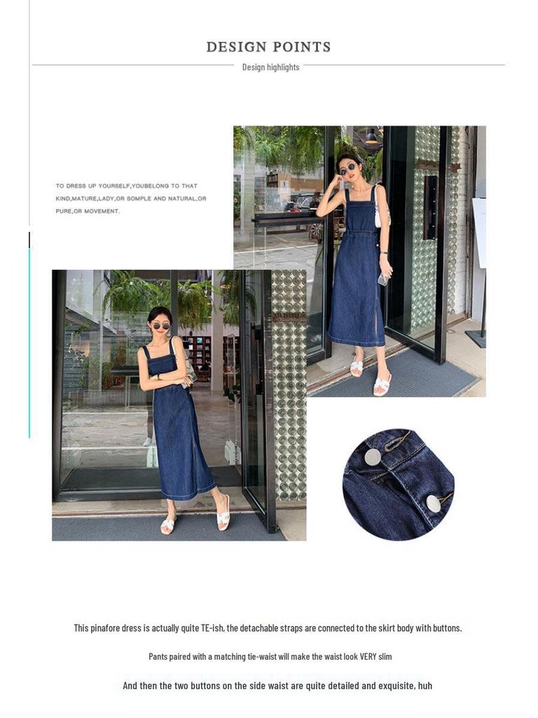 Женский джинсовый сарафан свободного кроя - Повседневное французское уличное платье на подтяжках с боковым разрезом.