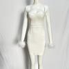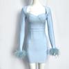 Новое вечернее платье с длинным рукавом и перьями в европейском и американском стиле с бандажной отделкой