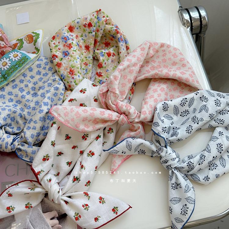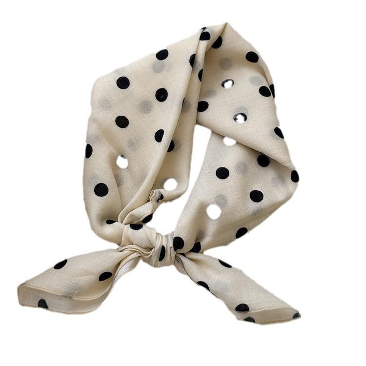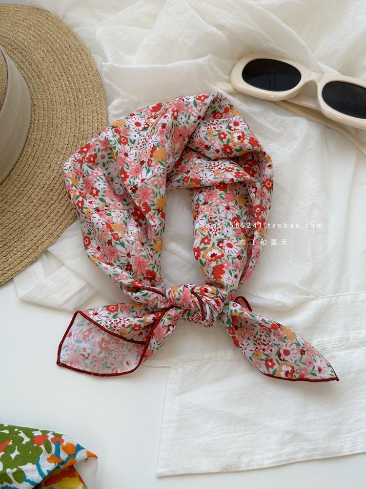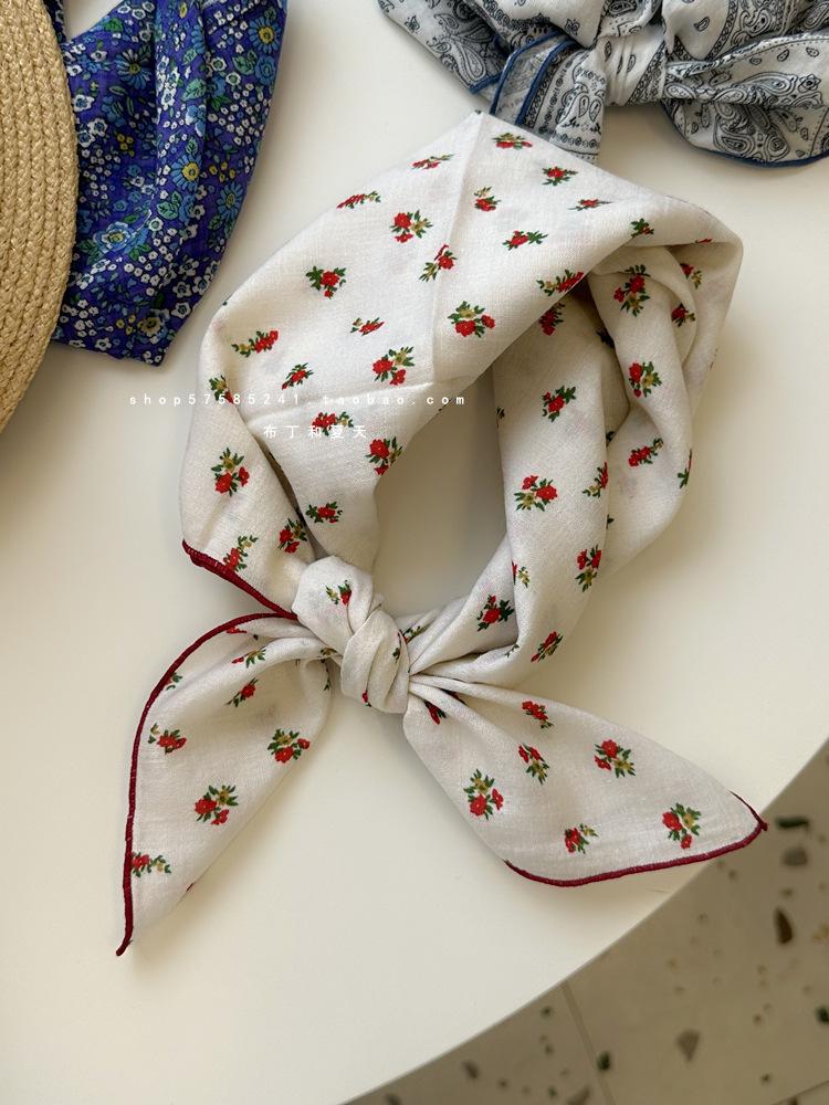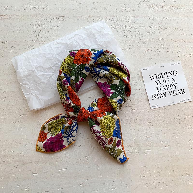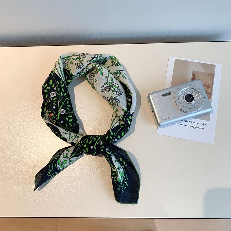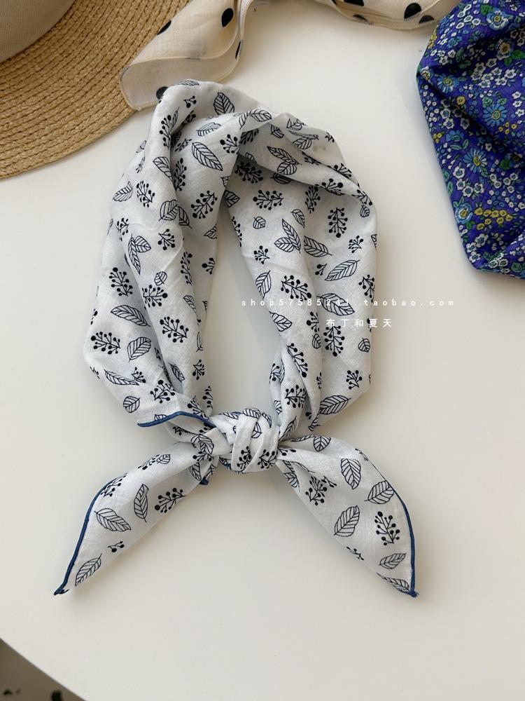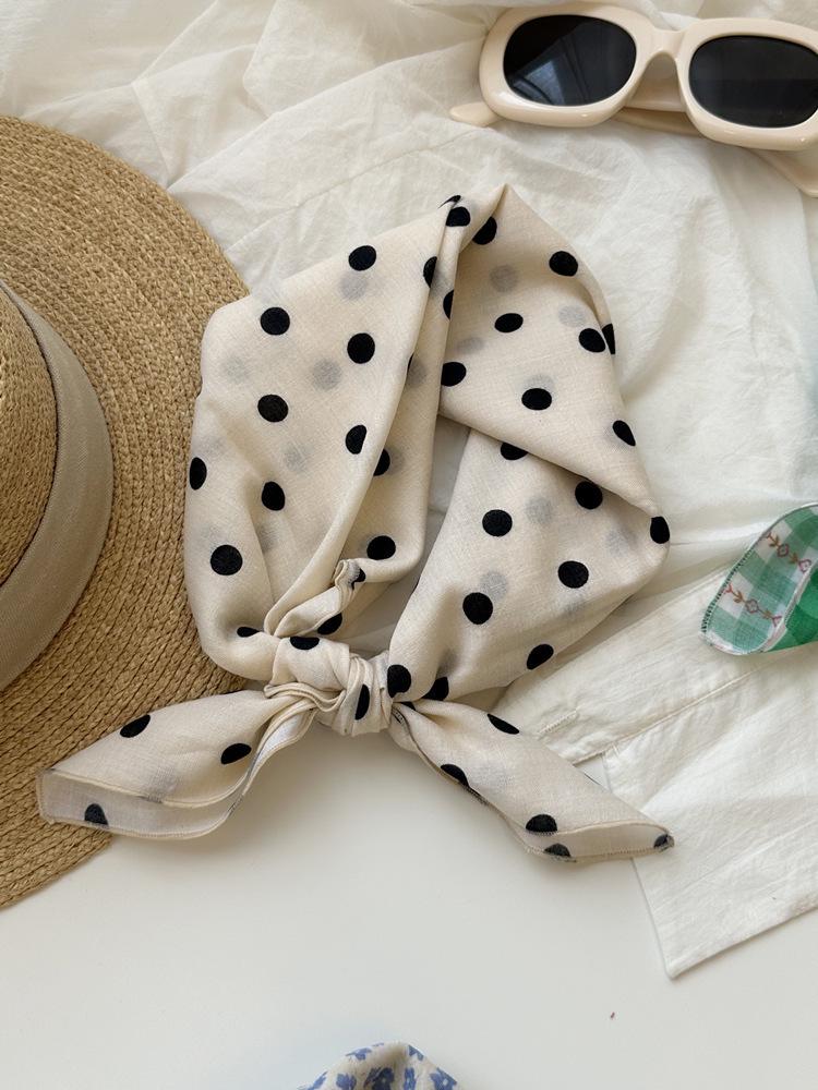 Хлопково-льняной квадратный шарф с цветочным принтом в горошек - Ретро и свежий платок
