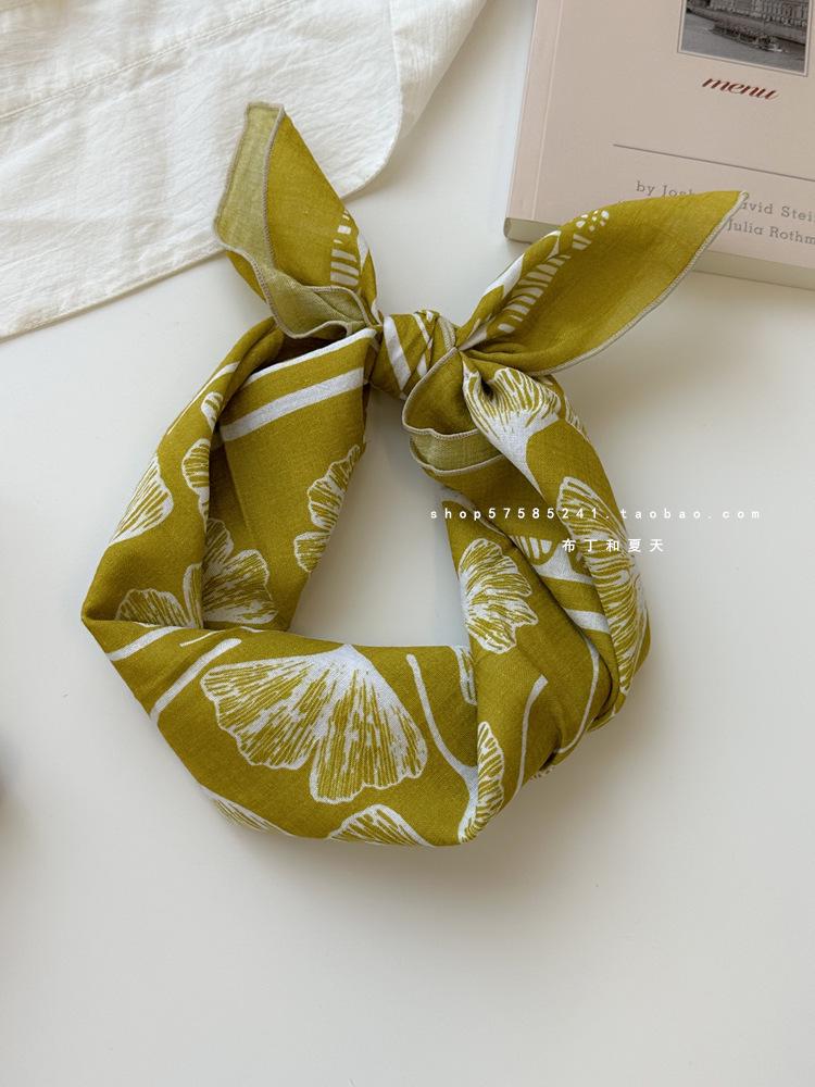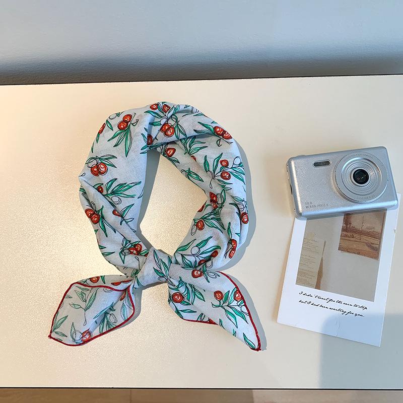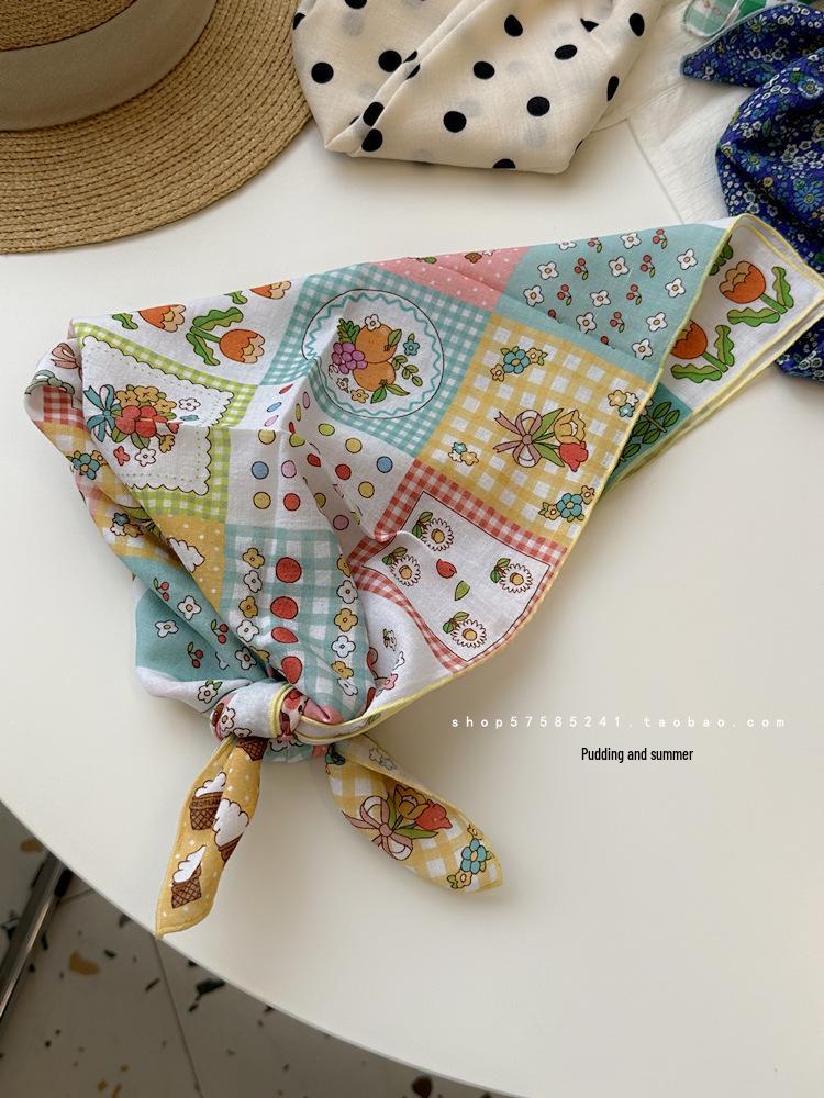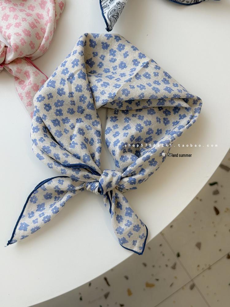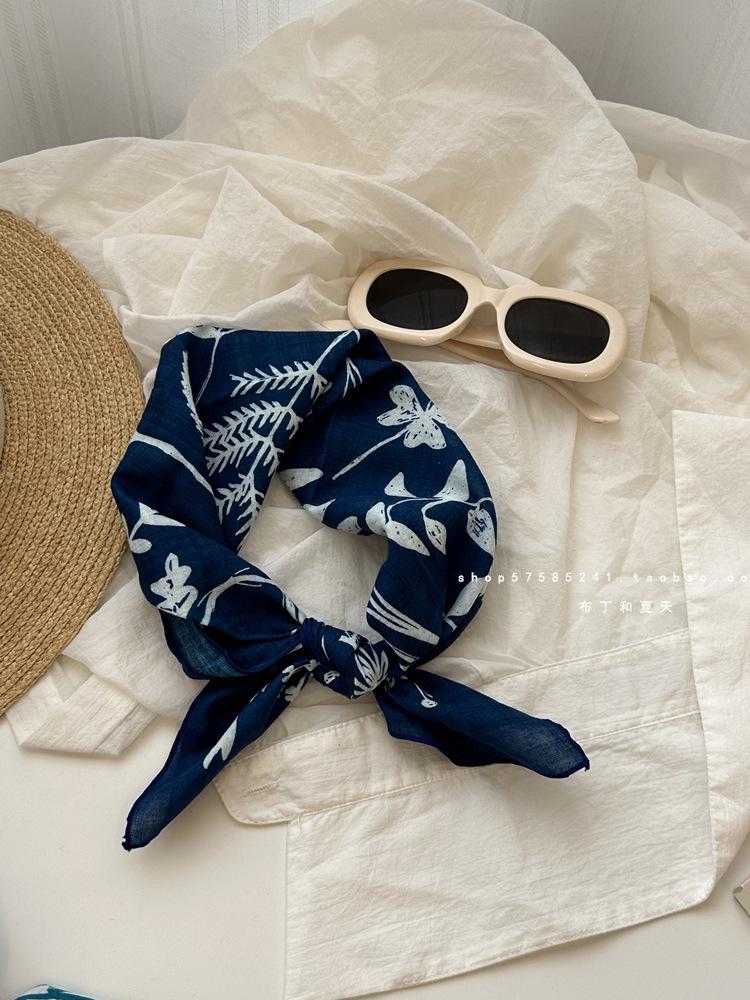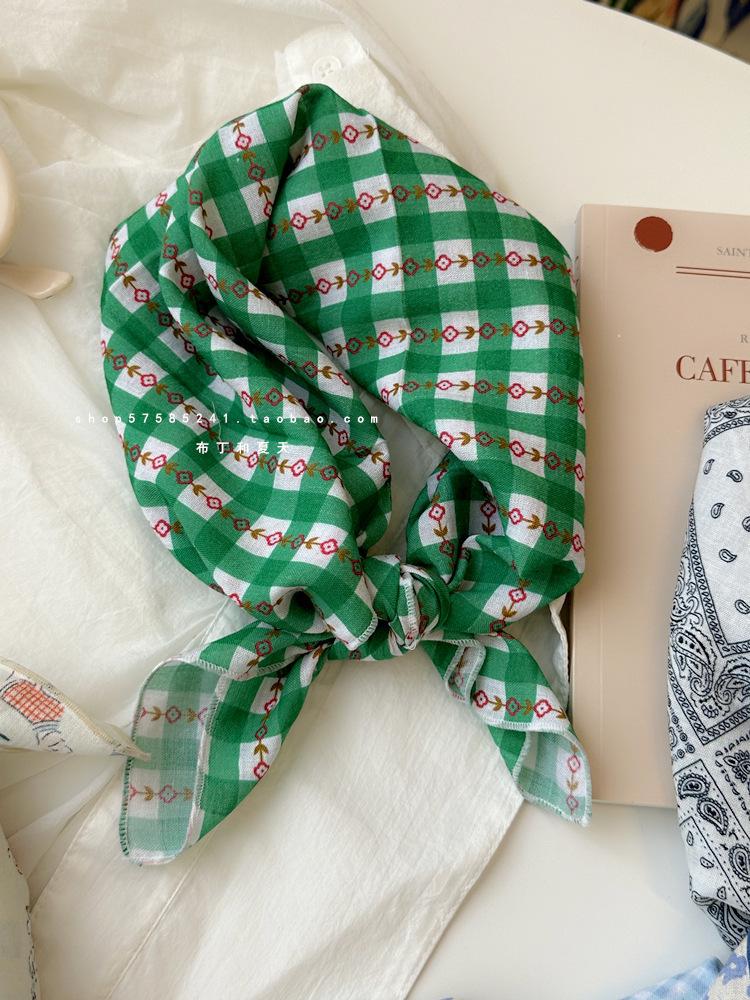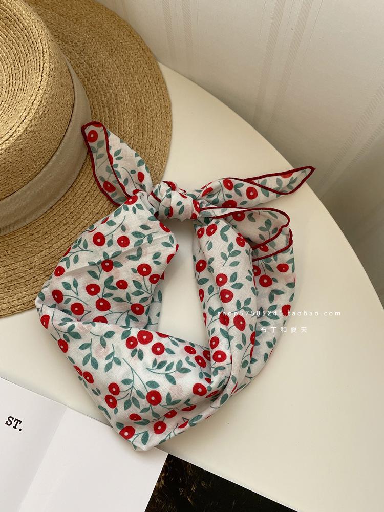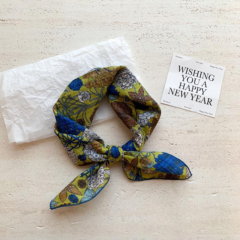 Хлопково-льняной квадратный шарф с цветочным принтом в горошек - Ретро и свежий платок